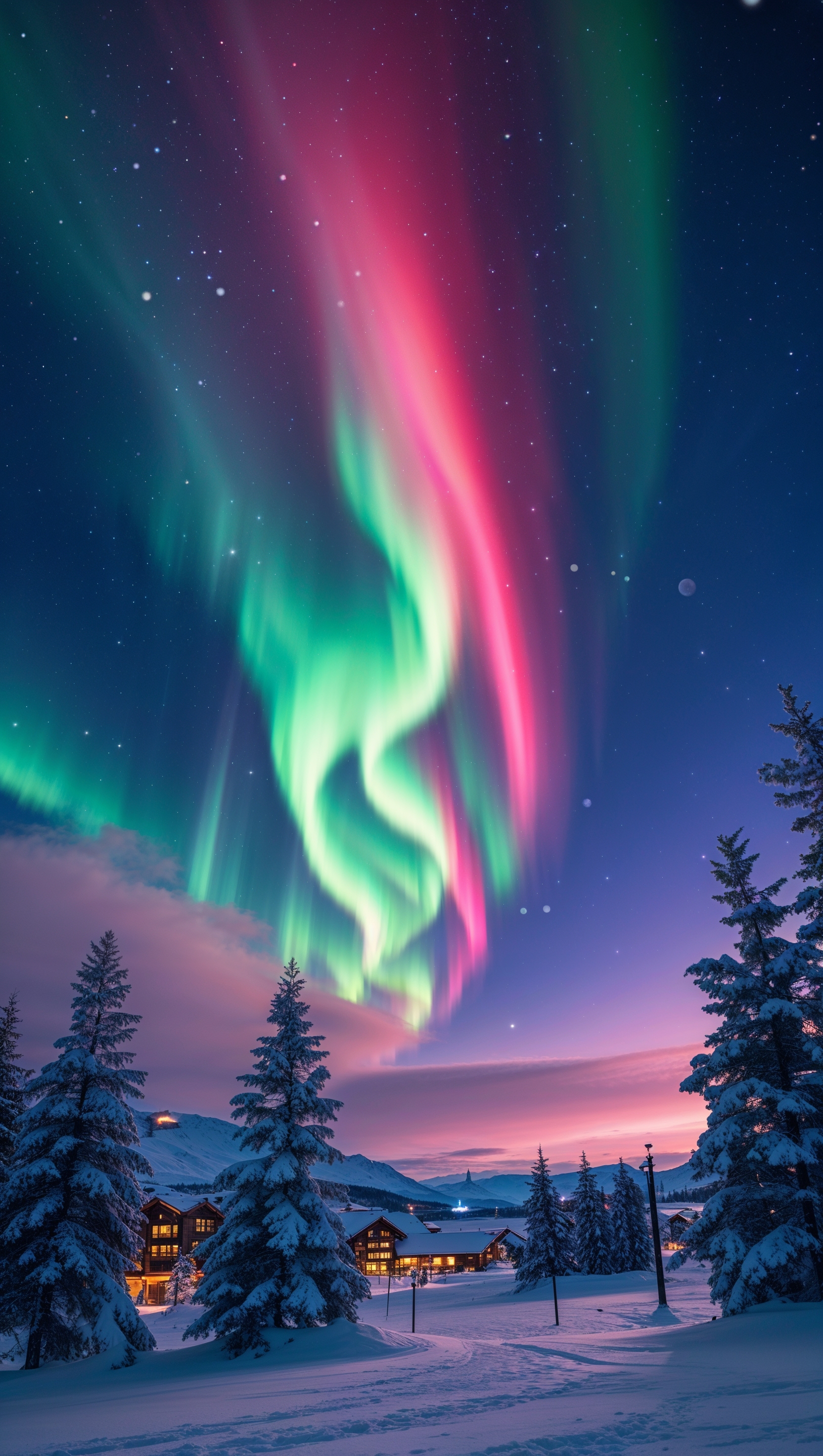 1664x2944 Northern lights over a snowy ski landscape, magical colors, iPhone wallpaper