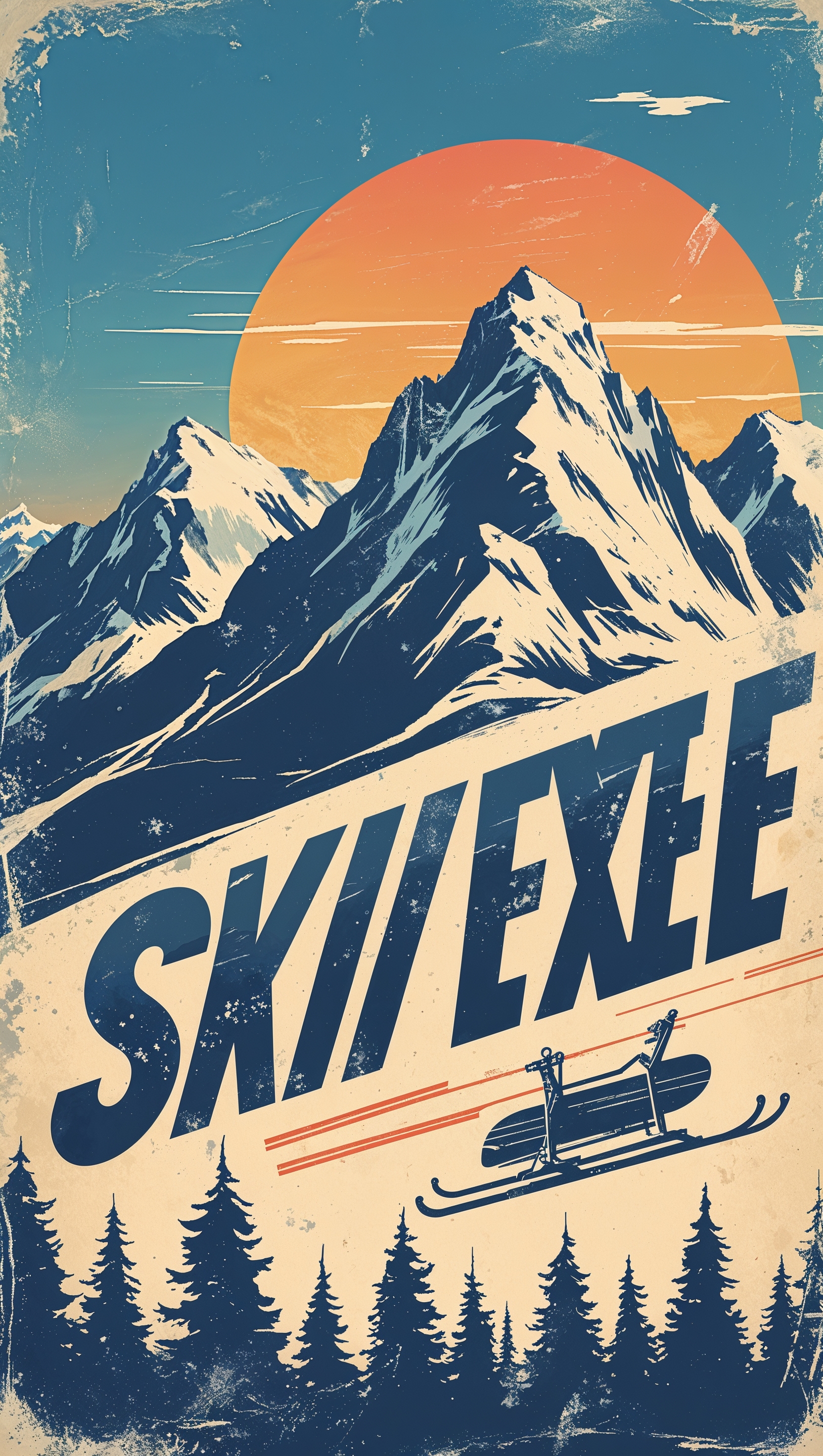1664x2944 Vintage-style ski poster illustration, retro design, iPhone wallpaper