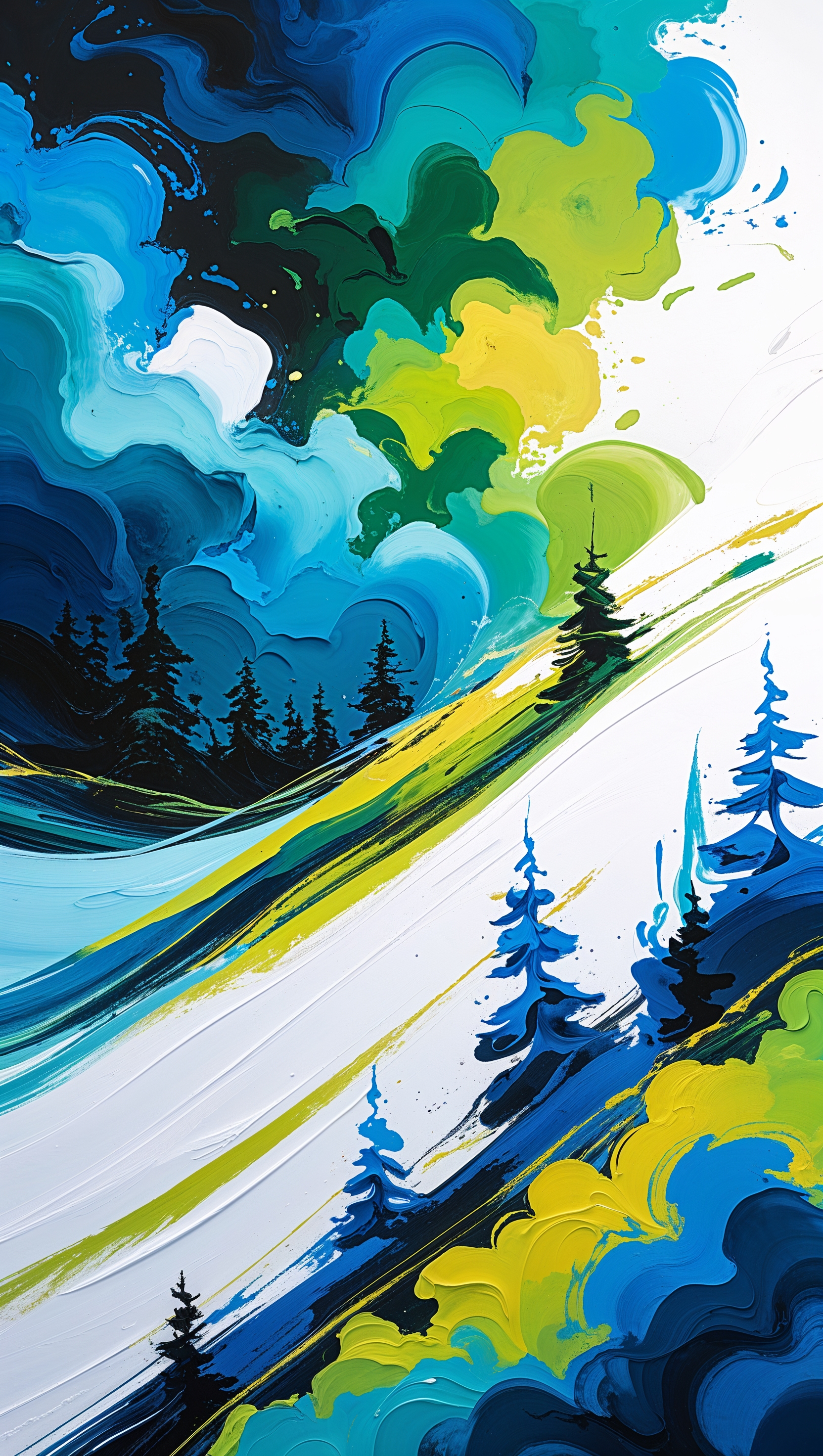 1664x2944 Abstract colorful ski slope painting, modern art wallpaper