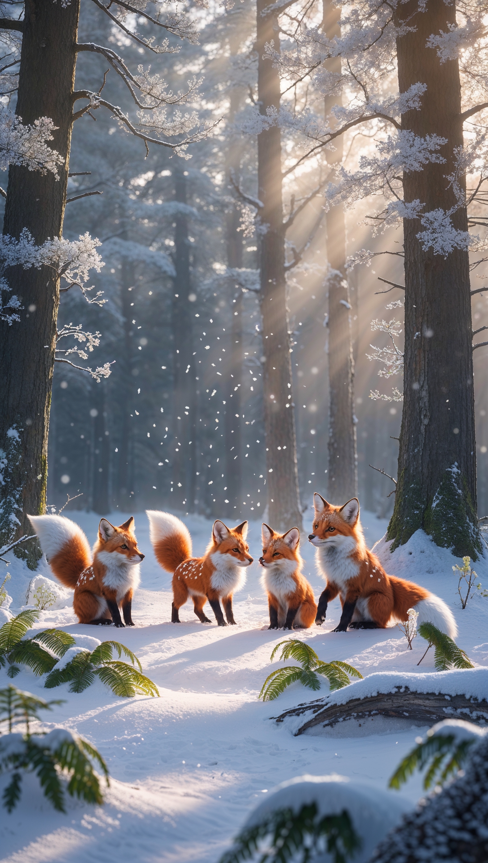 1664x2944 Cute animals like foxes or deer in a peaceful winter forest