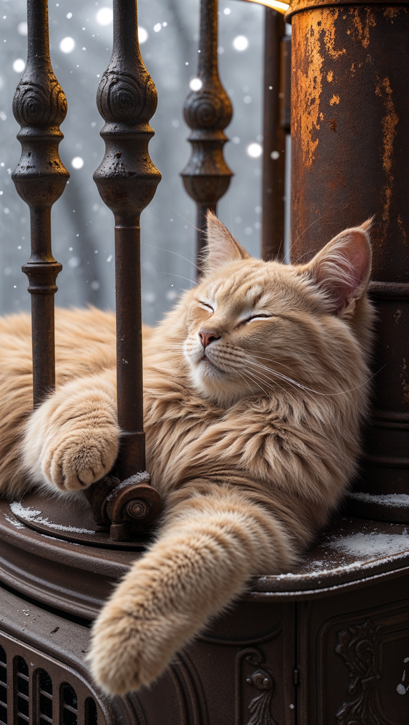 1664x2944 A cat sleeping by a warm heater in winter