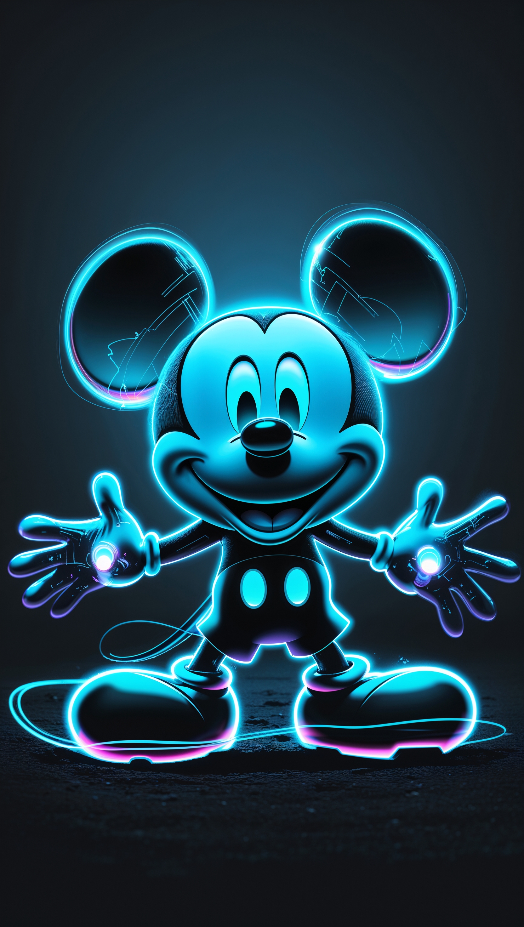1664x2944 Mickey Mouse with neon effect and dark background