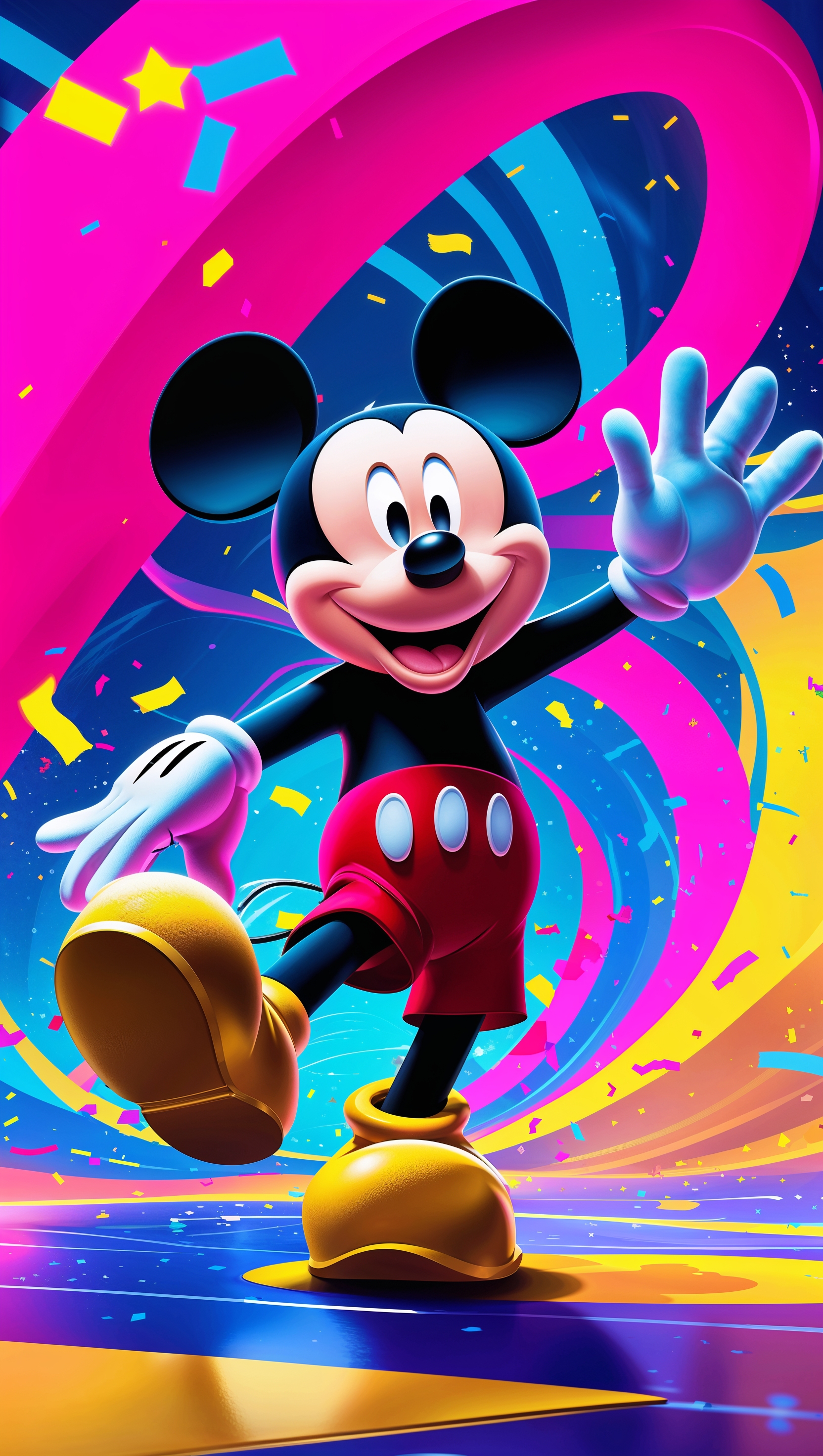 1664x2944 Mickey Mouse dancing to pop music, colorful background