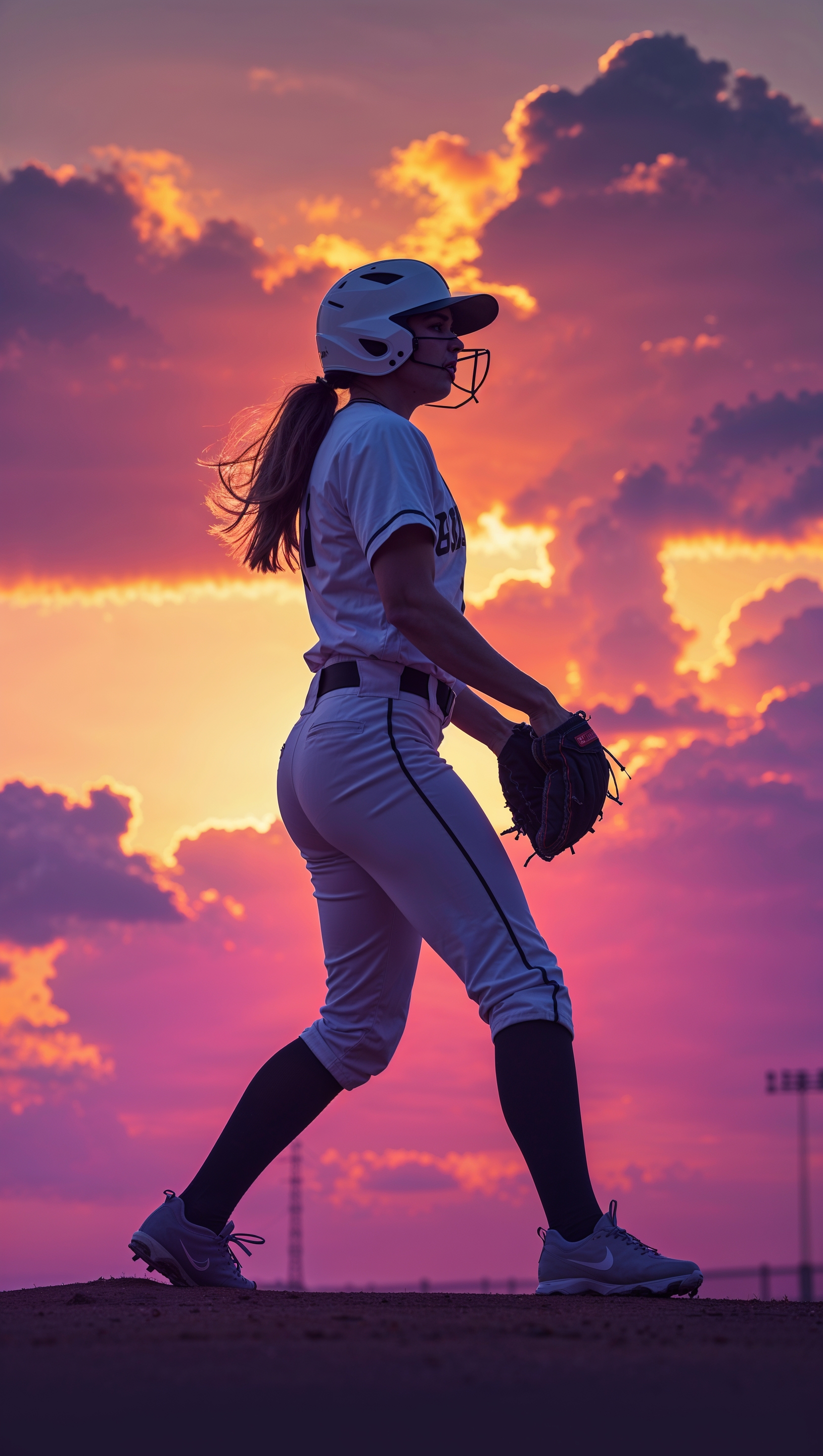 1664x2944 Softball silhouette against a sunset background, dramatic, iPhone wallpaper