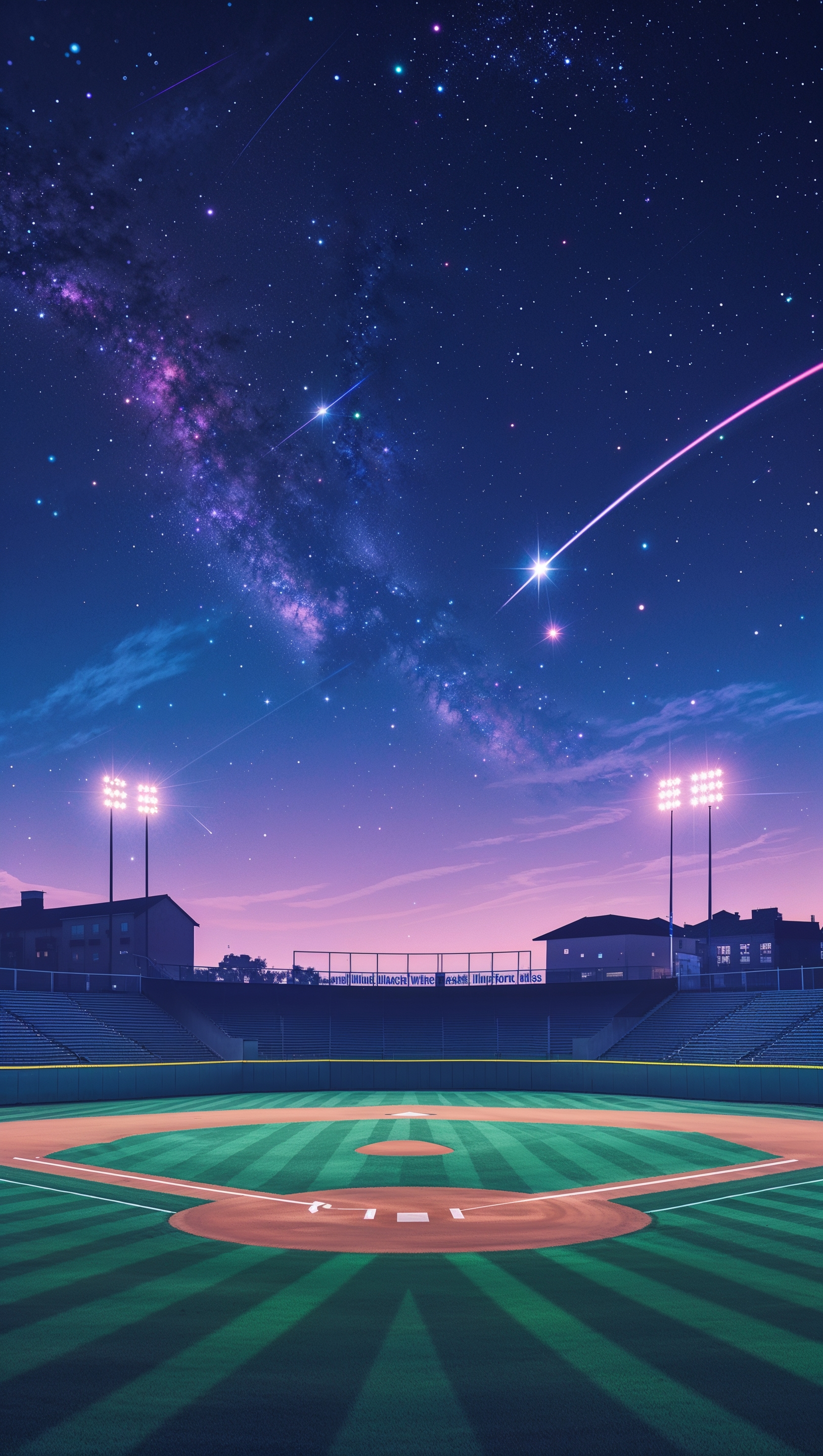 1664x2944 Softball stadium under starry night sky, dreamy atmosphere, iPhone wallpaper