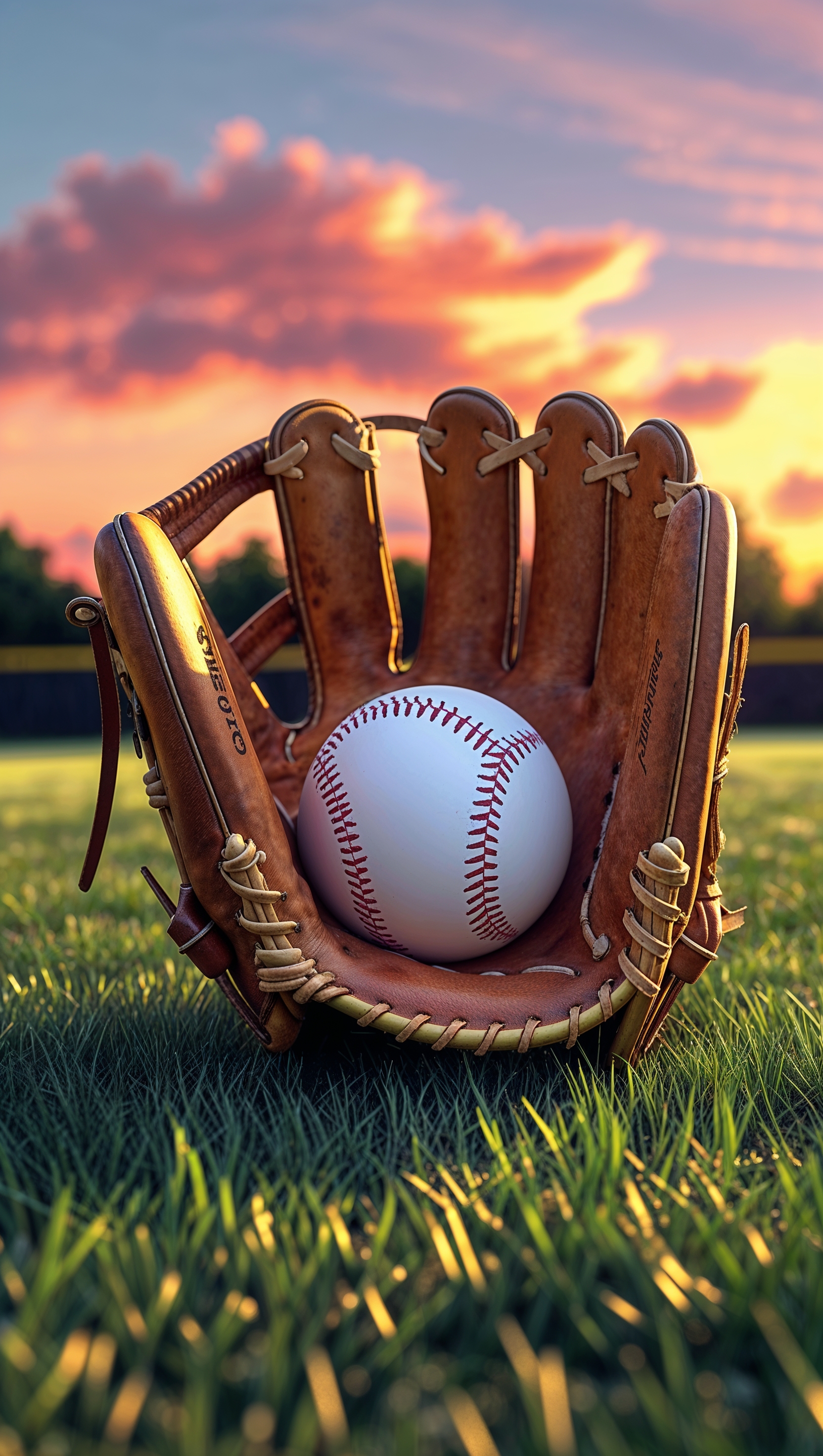 1664x2944 Softball glove and ball on the field at sunset, high detail, iPhone wallpaper
