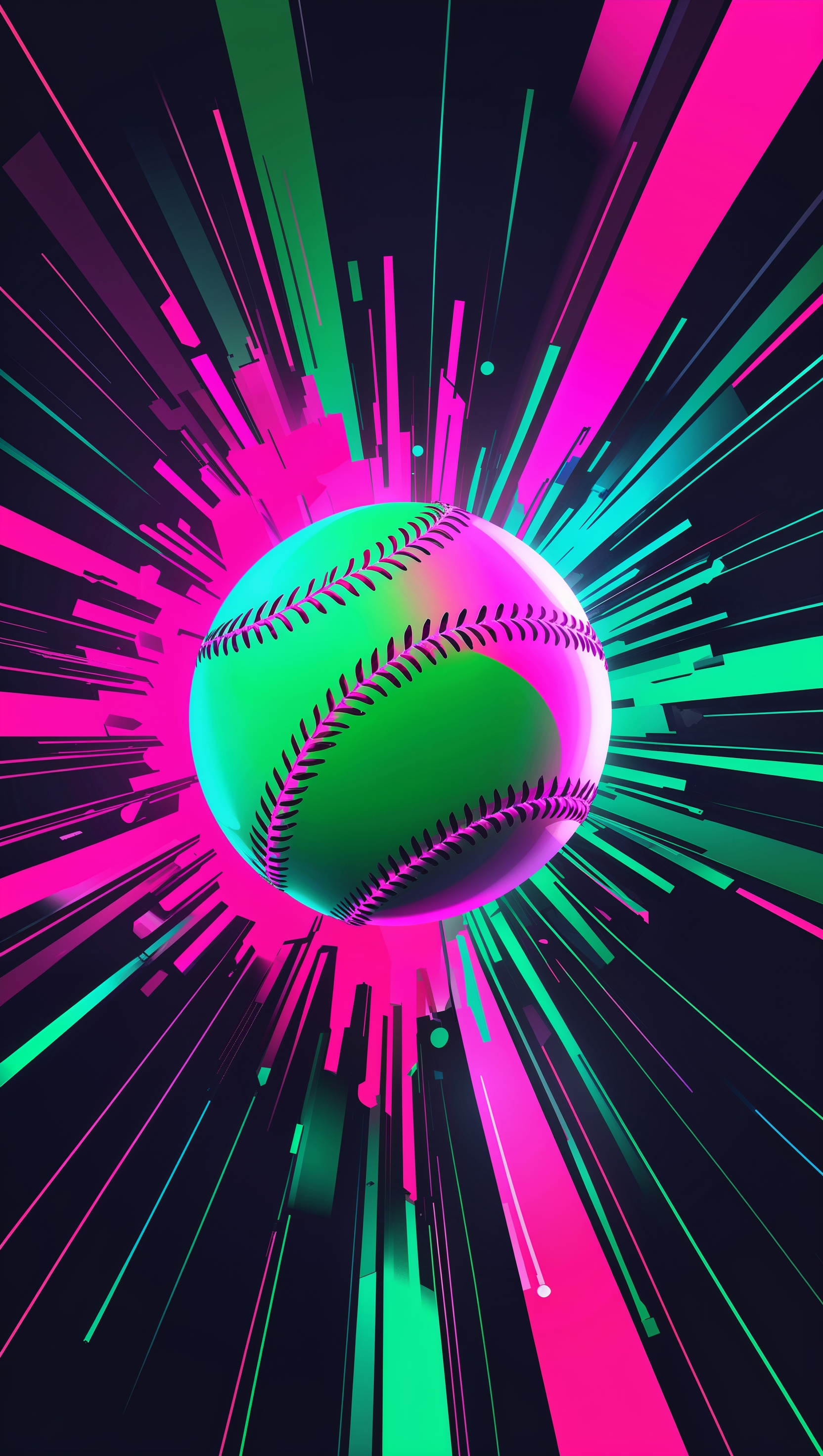 1664x2944 Abstract softball art with neon colors, modern design, iPhone background