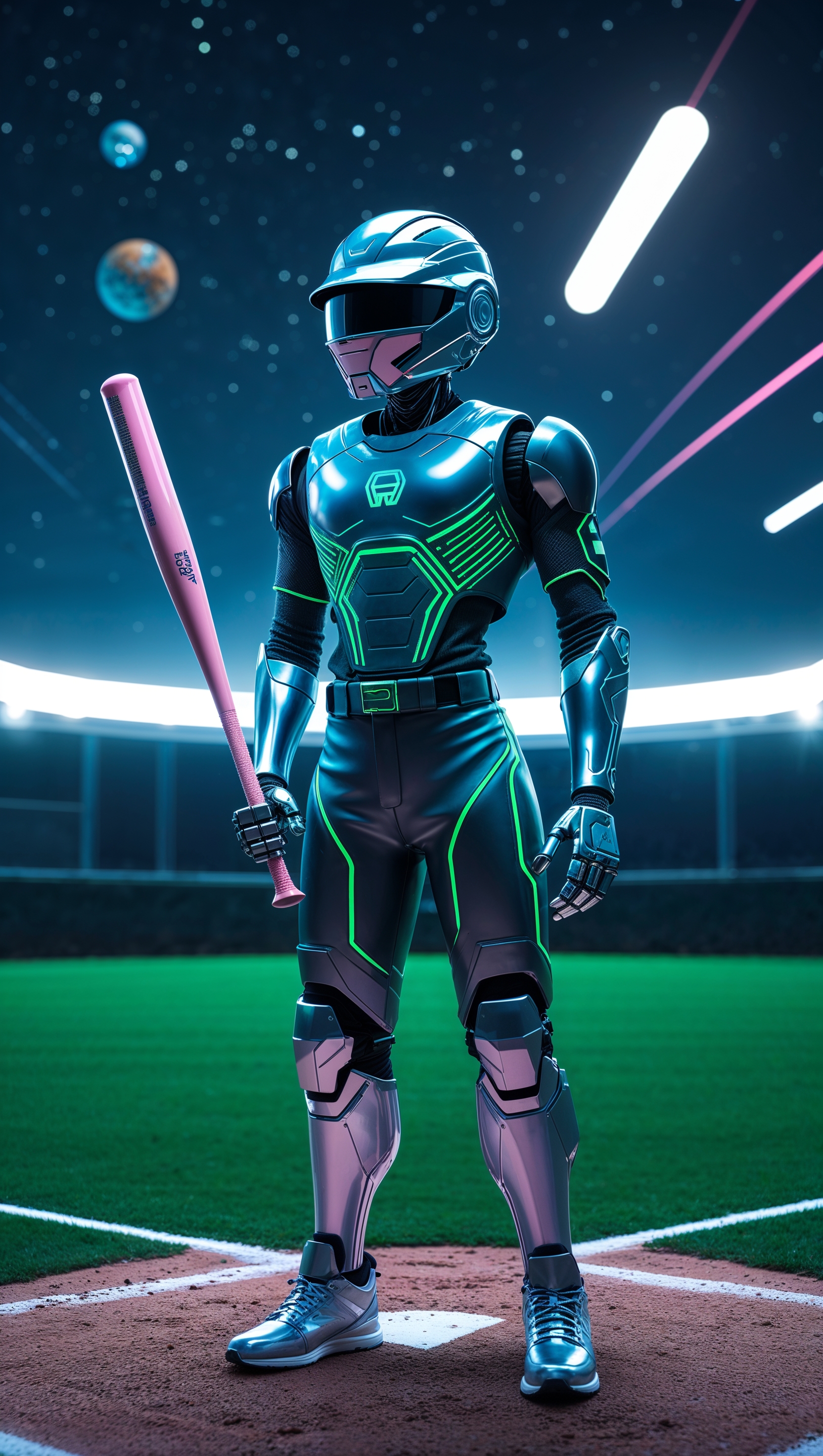 1664x2944 Futuristic robot playing softball, sci-fi theme, iPhone wallpaper