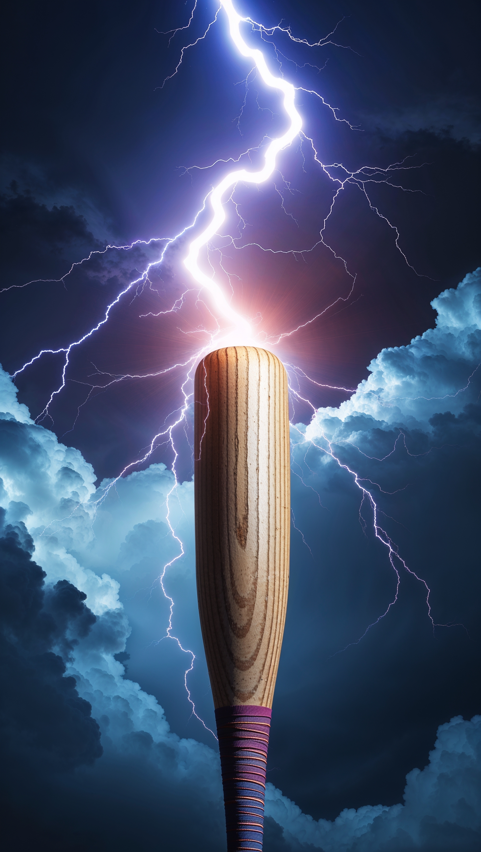 1664x2944 Lightning striking a softball bat, dramatic energy, iPhone wallpaper