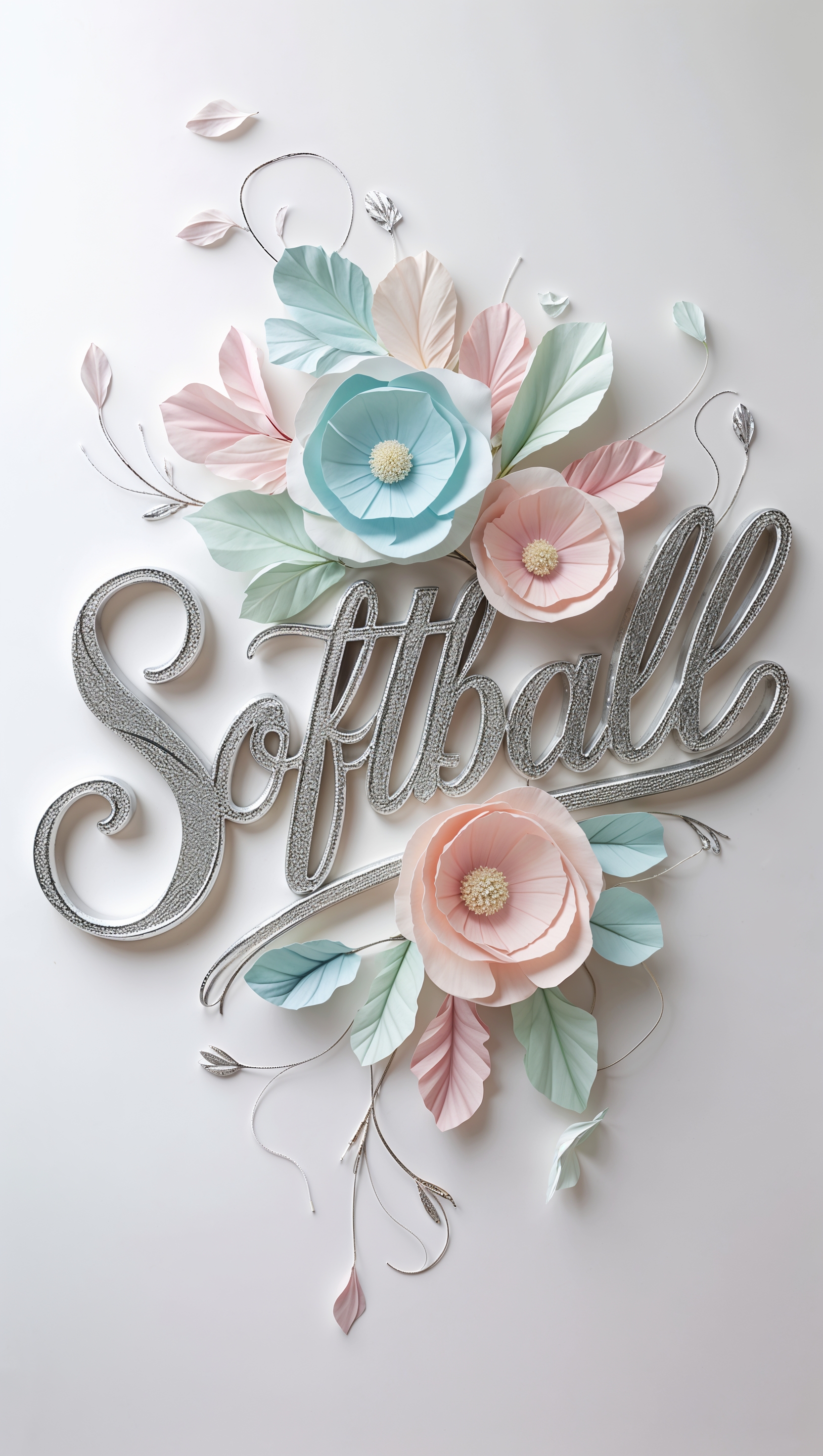 1664x2944 Elegant typography of the word "Softball" with floral decorations, iPhone background