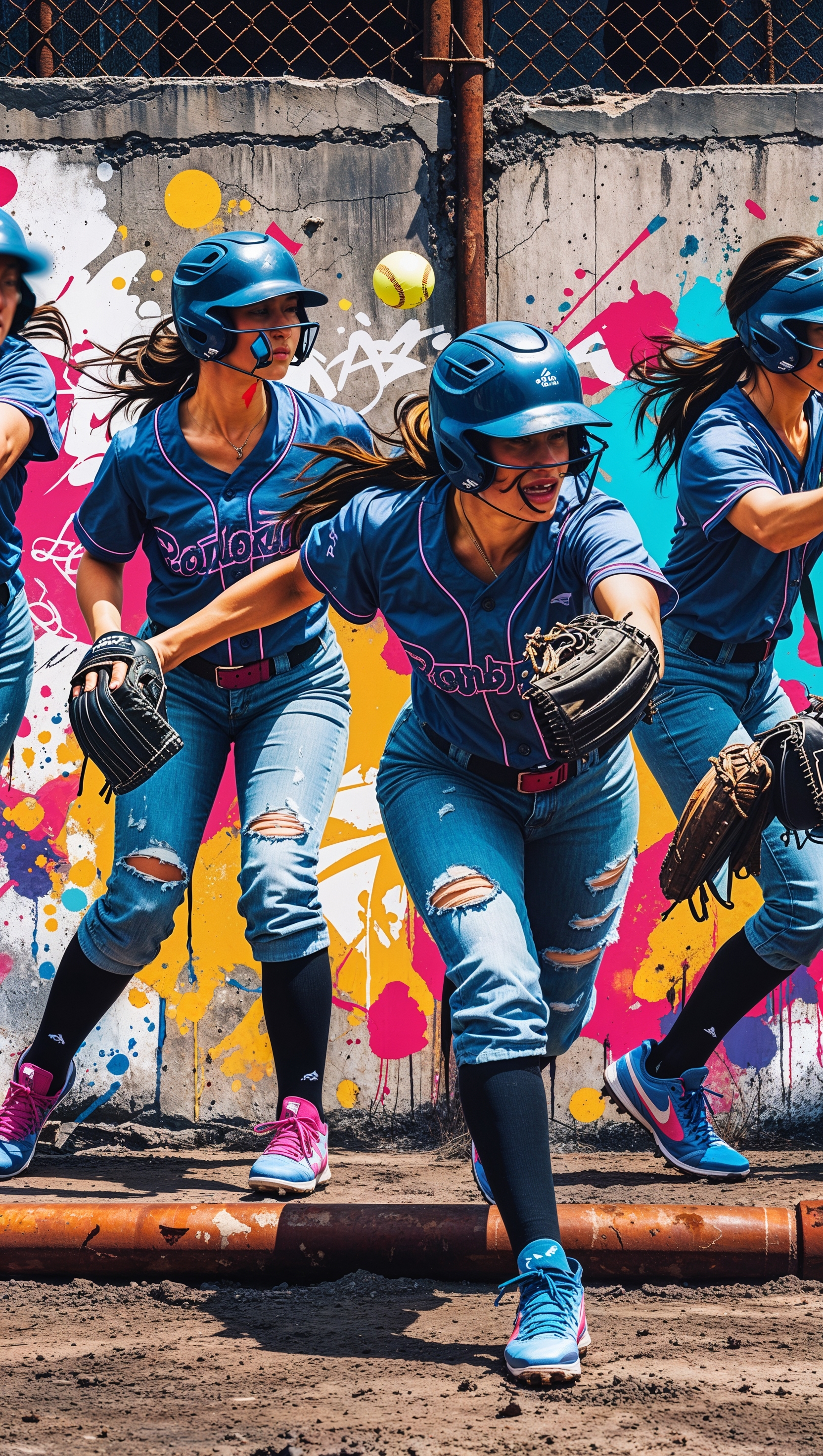 1664x2944 Cool graffiti art of softball players, urban street style, iPhone wallpaper