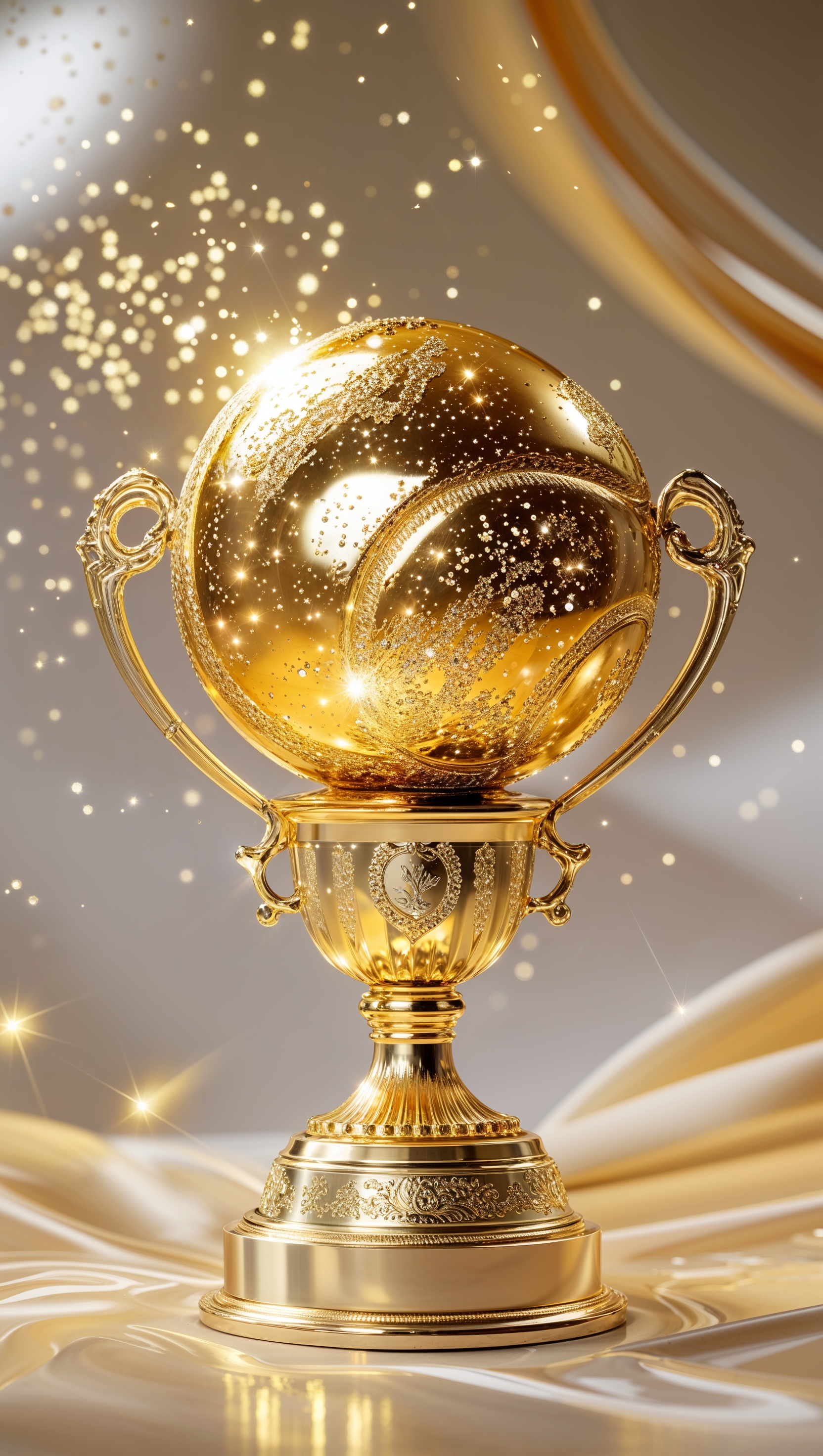 1664x2944 Golden softball trophy with sparkles, luxurious theme, iPhone wallpaper