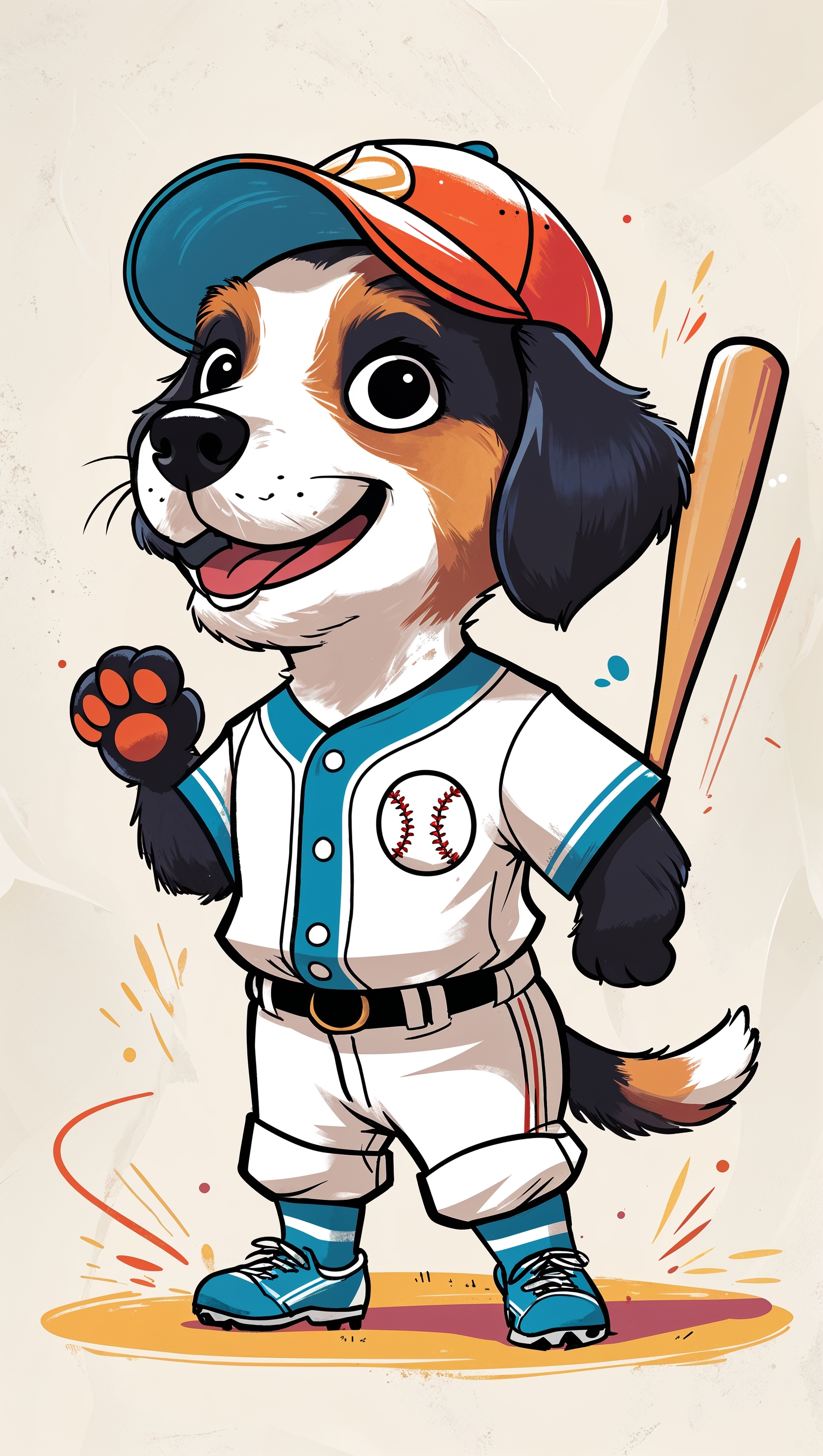 1664x2944 A cute dog wearing a softball uniform, playful art, iPhone background