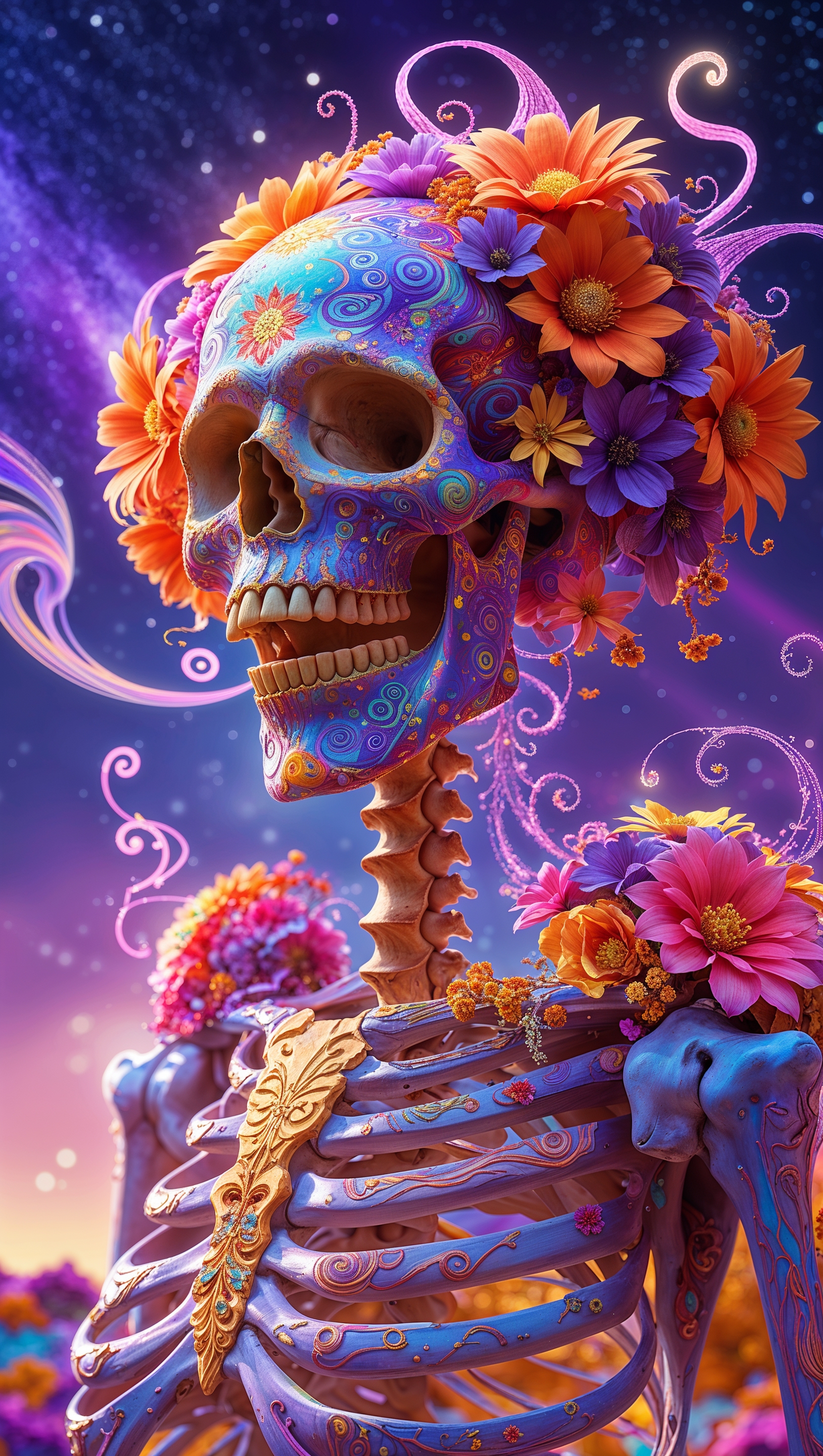 1664x2944 Colorful skeleton with flowers in psychedelic style