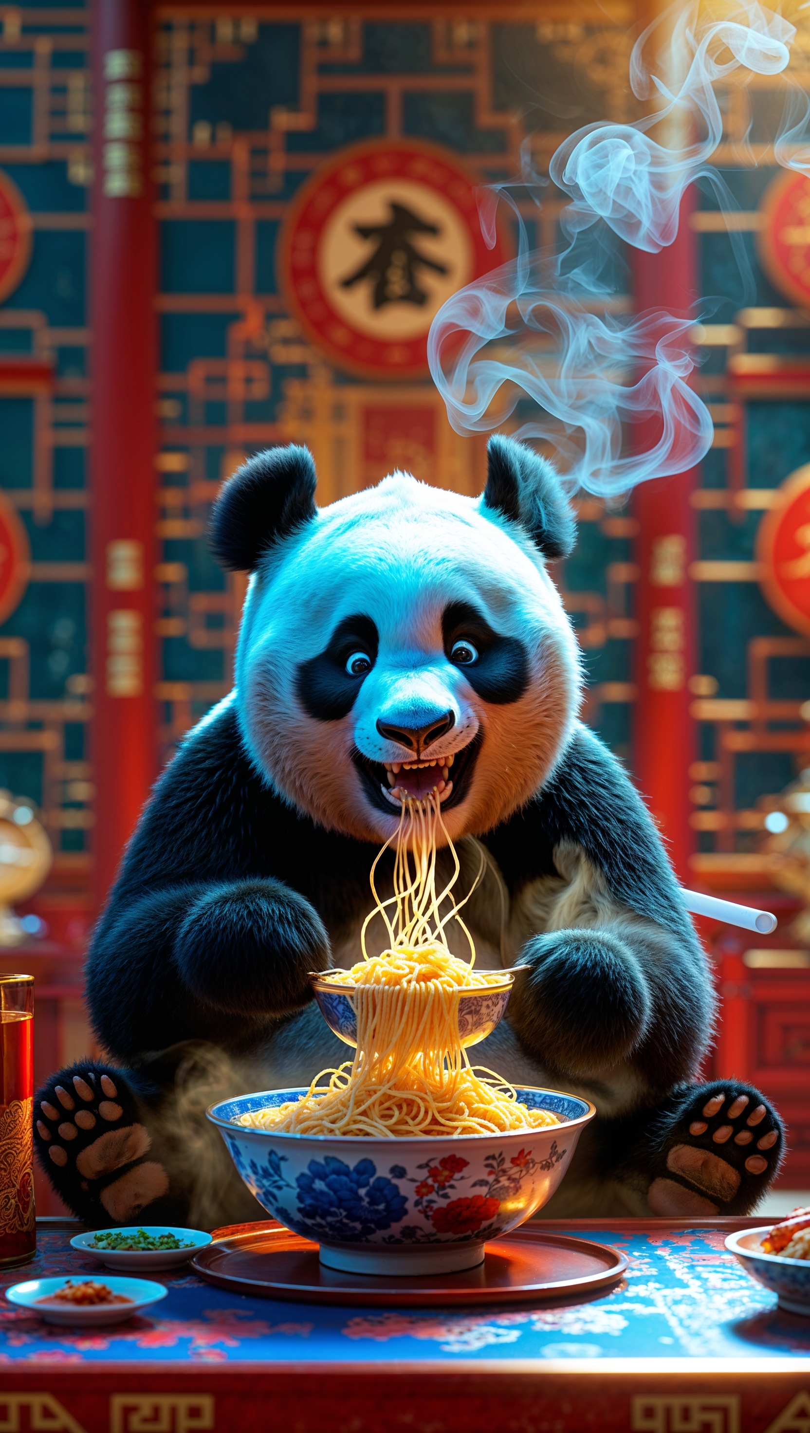 1664x2944 Wallpaper of Po eating noodles with cinematic effects