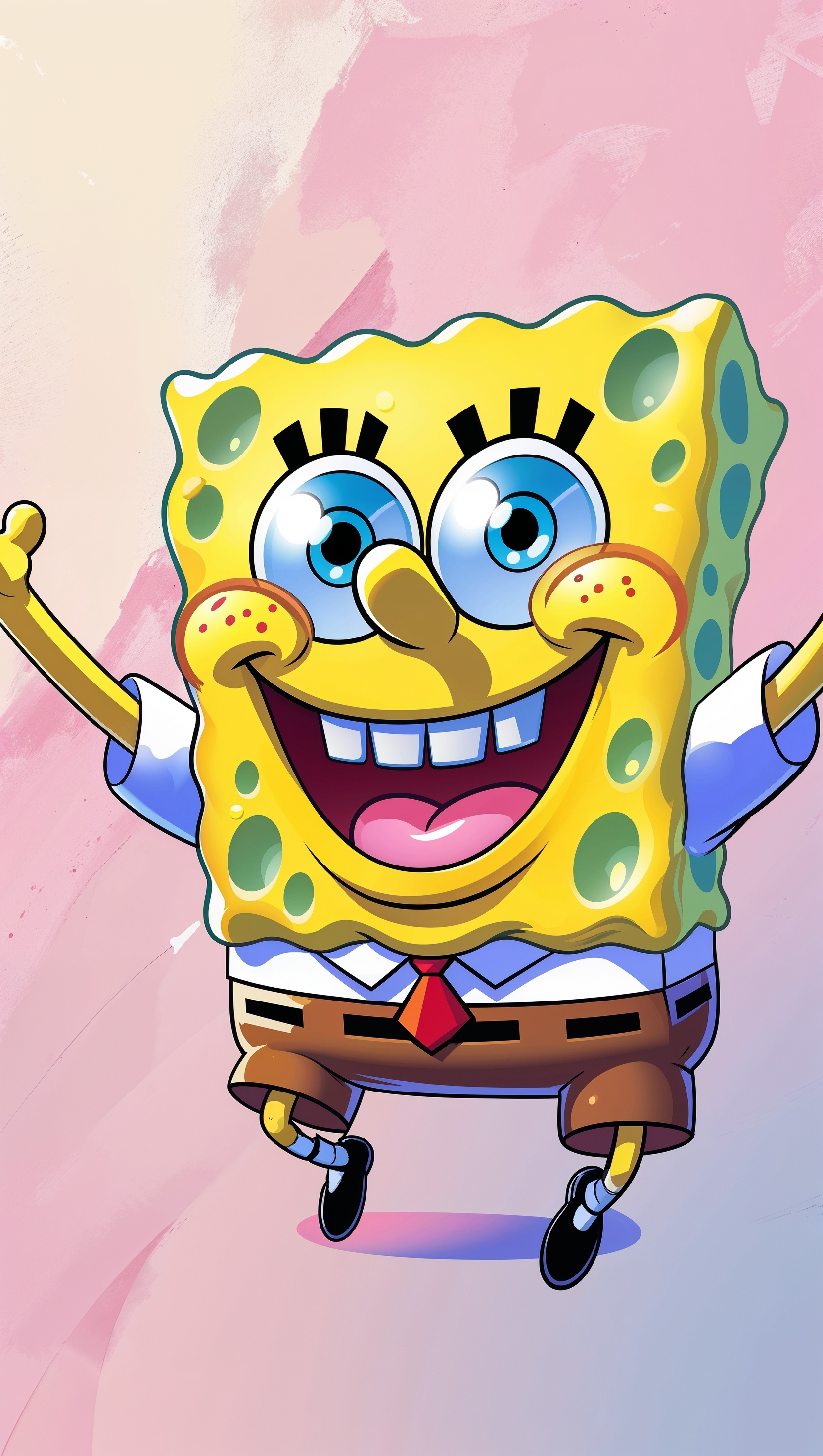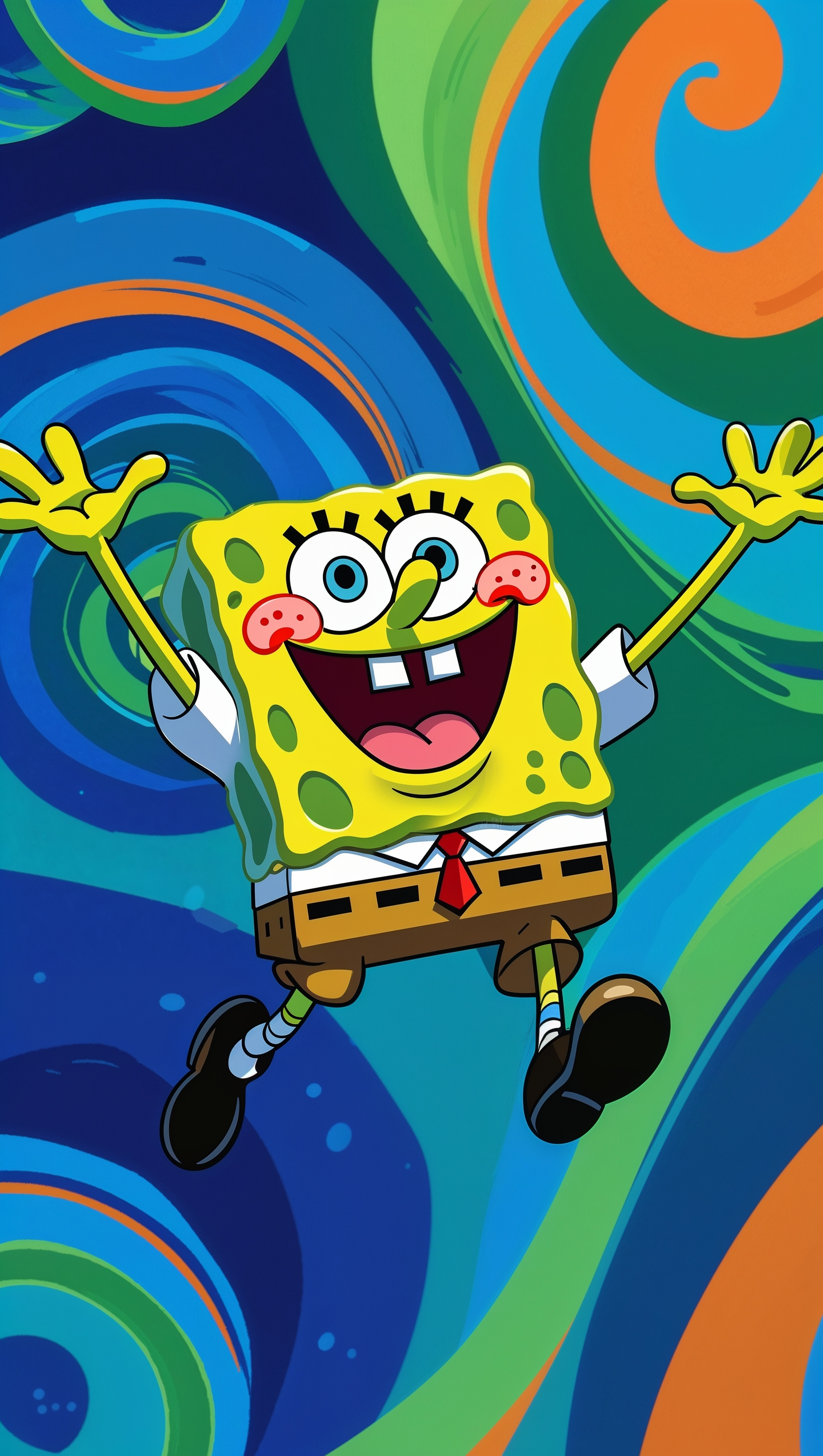 1664x2944 Spongebob jumping with joy with a colorful background for iPhone wallpaper