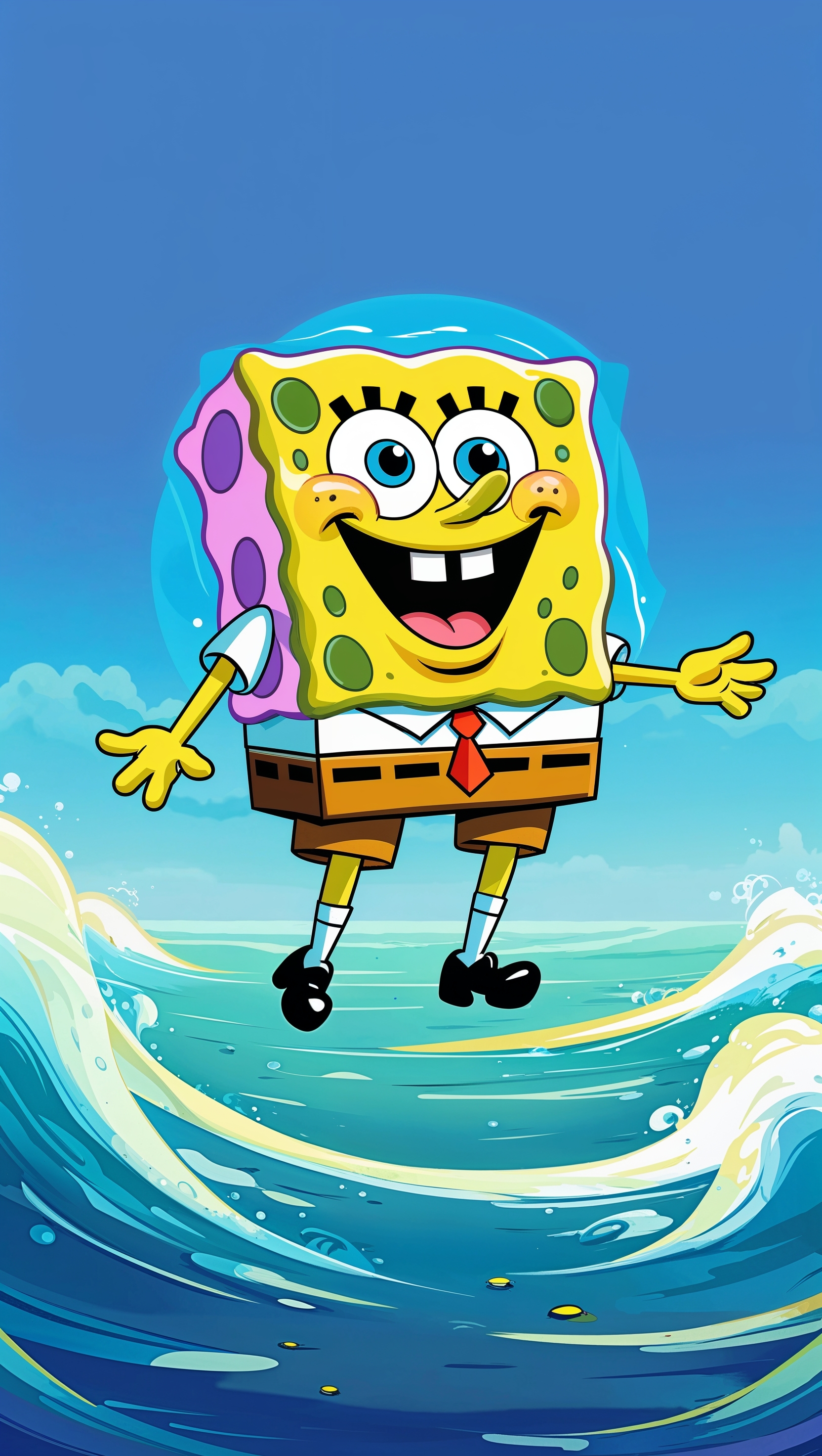 1664x2944 Spongebob with a blue ocean background in cartoon style for iPhone wallpaper