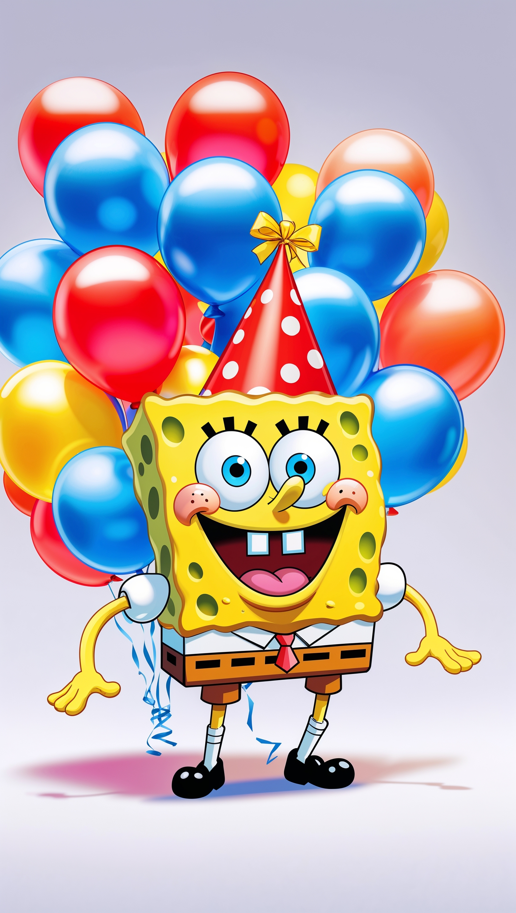 1664x2944 Spongebob at a birthday party with balloons and a party hat for iPhone wallpaper