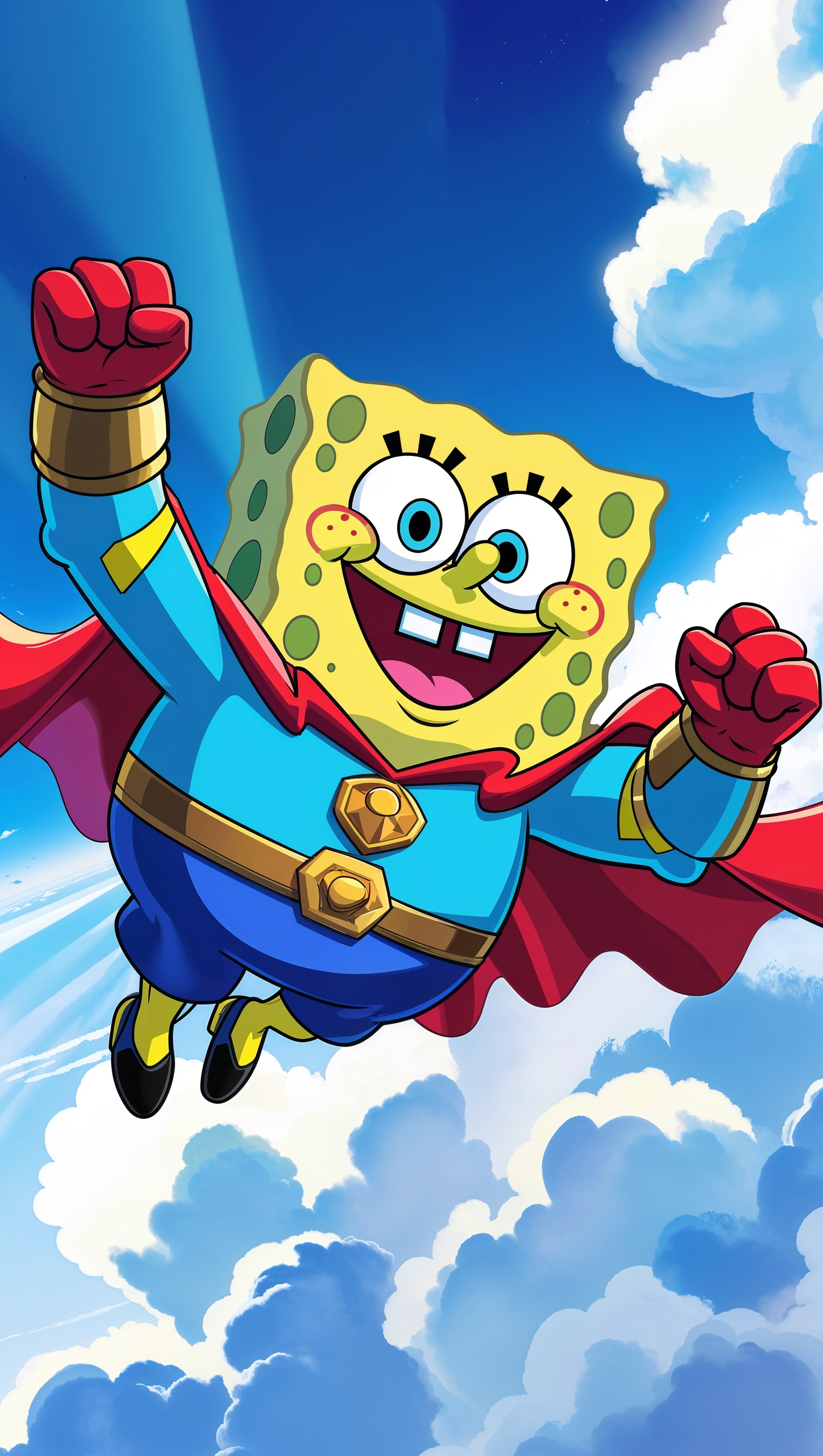 1664x2944 Spongebob flying in superhero costume for iPhone wallpaper