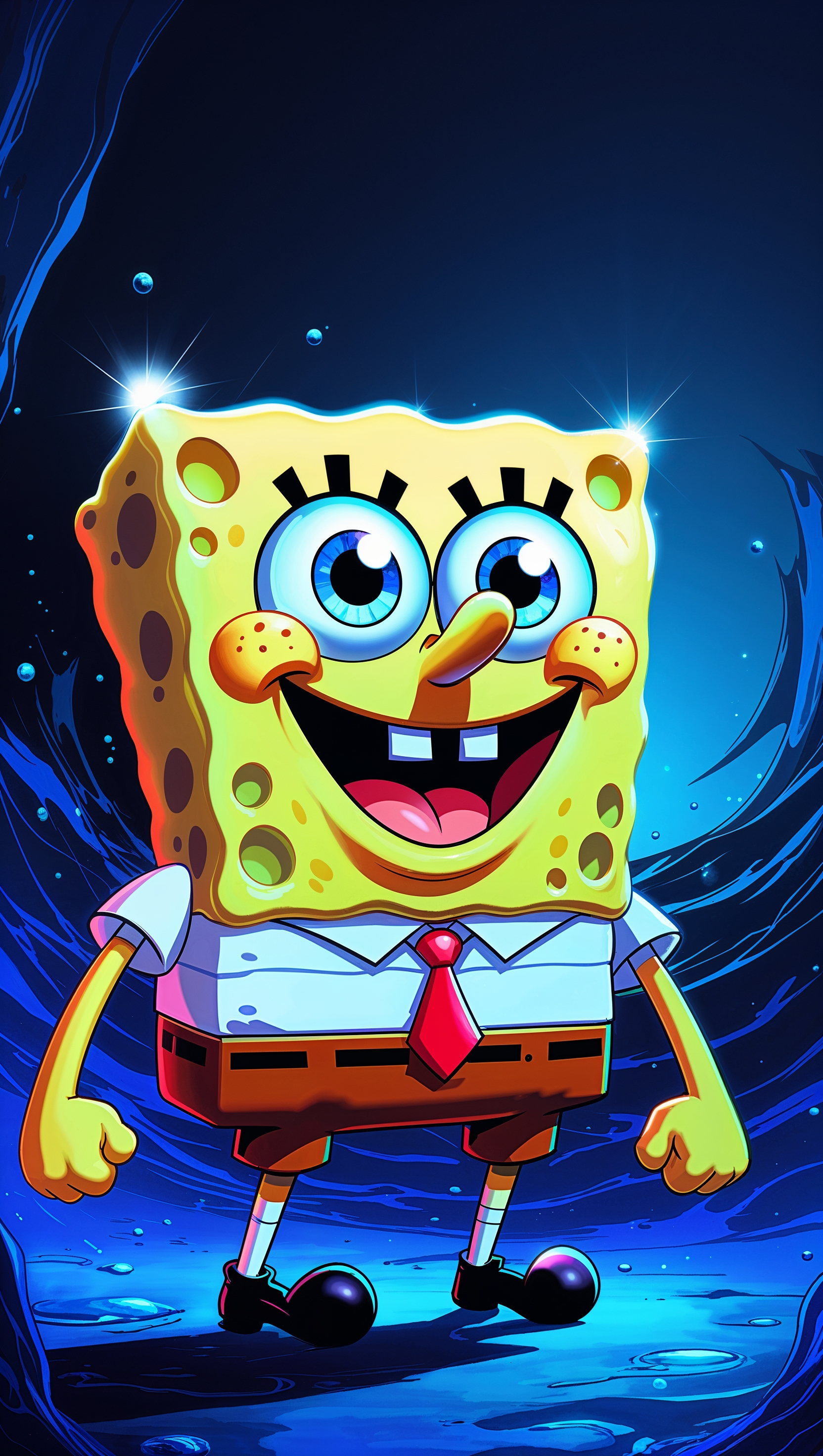 1664x2944 Spongebob in anime style with big eyes and special lighting for iPhone wallpaper