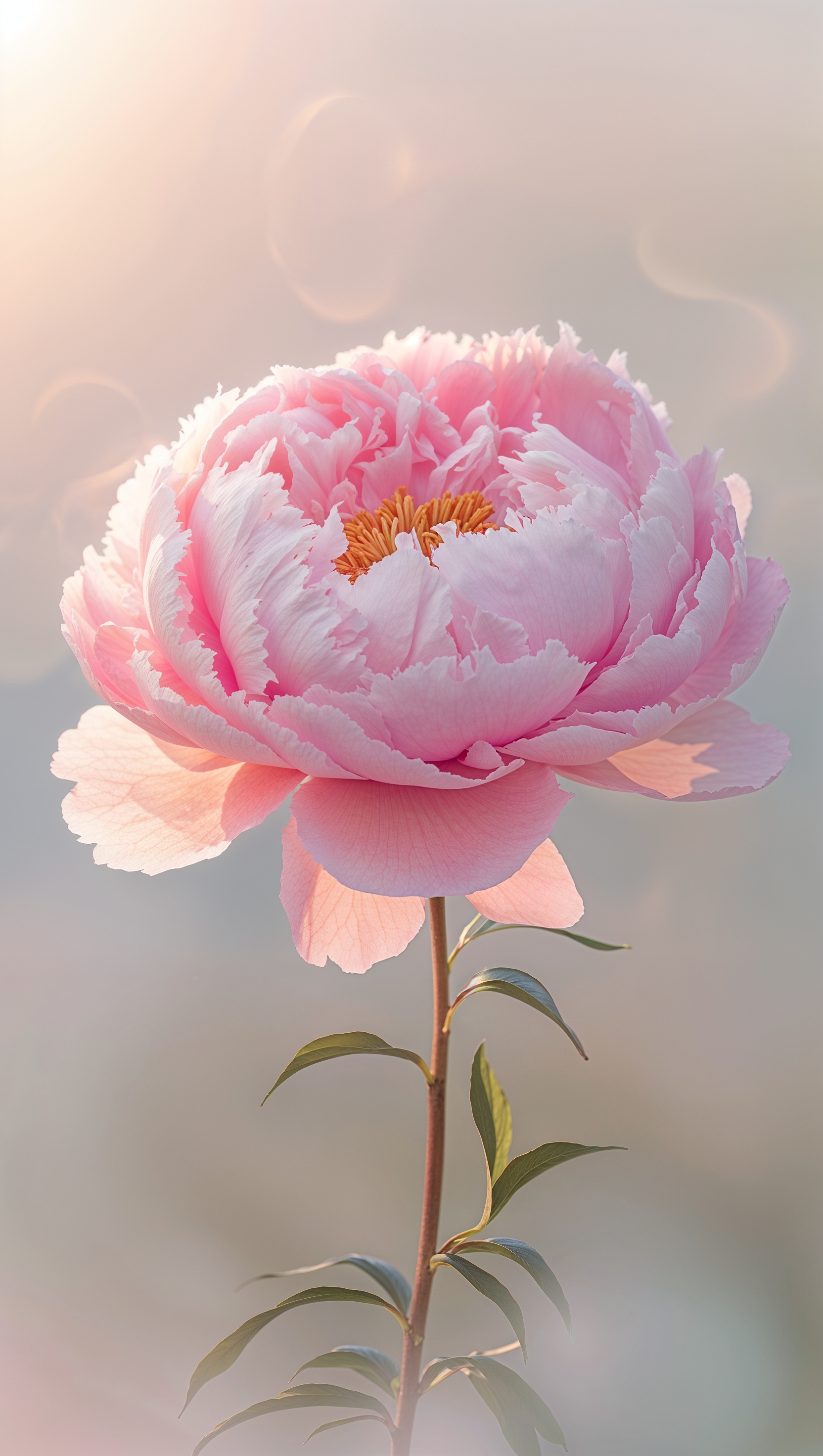1664x2944 Photorealistic pink peony in bloom with natural sunlight and soft ambient blur behind