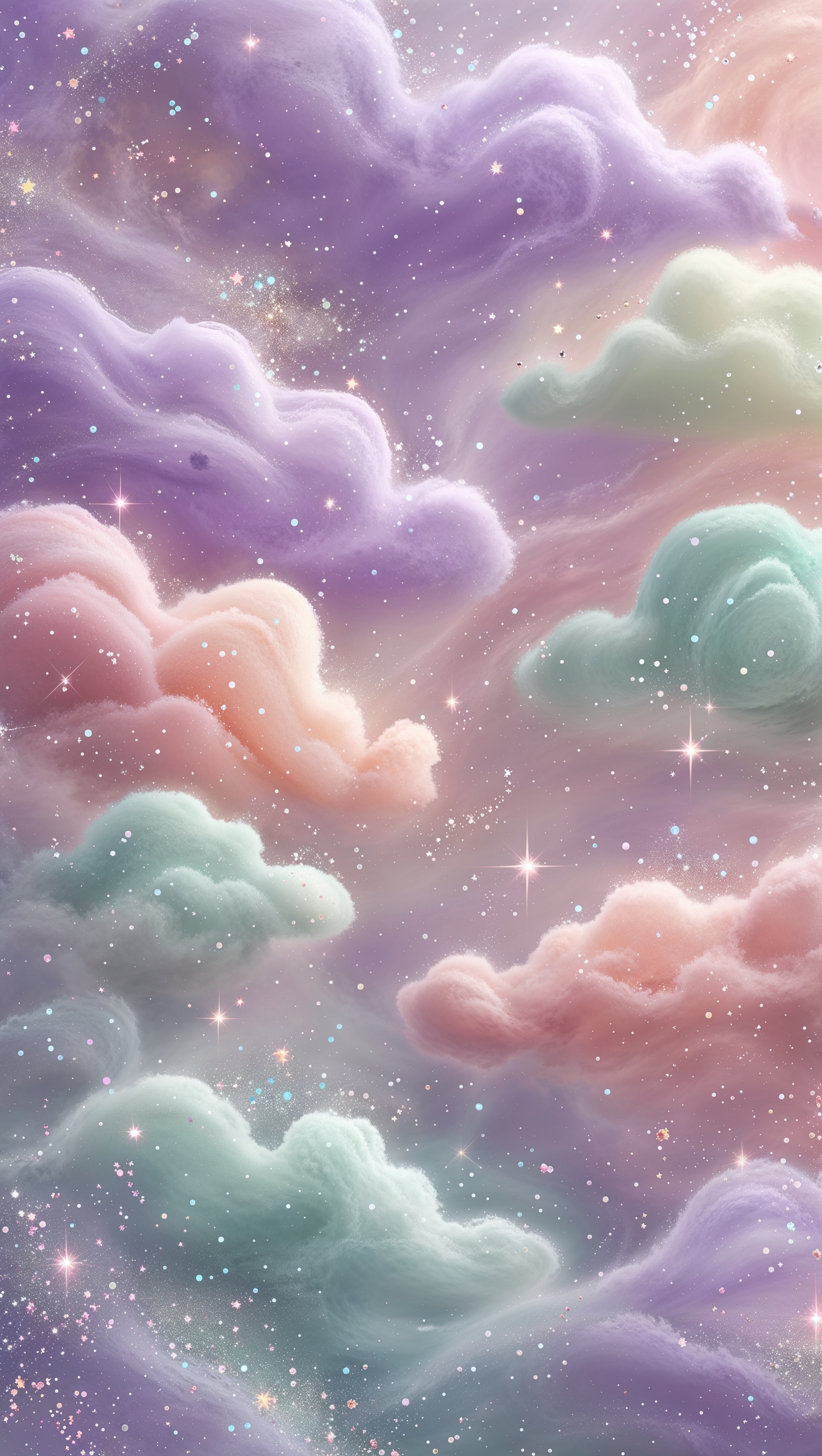 1664x2944 Pastel clouds in a dreamy sky with subtle sparkles and cotton candy tones