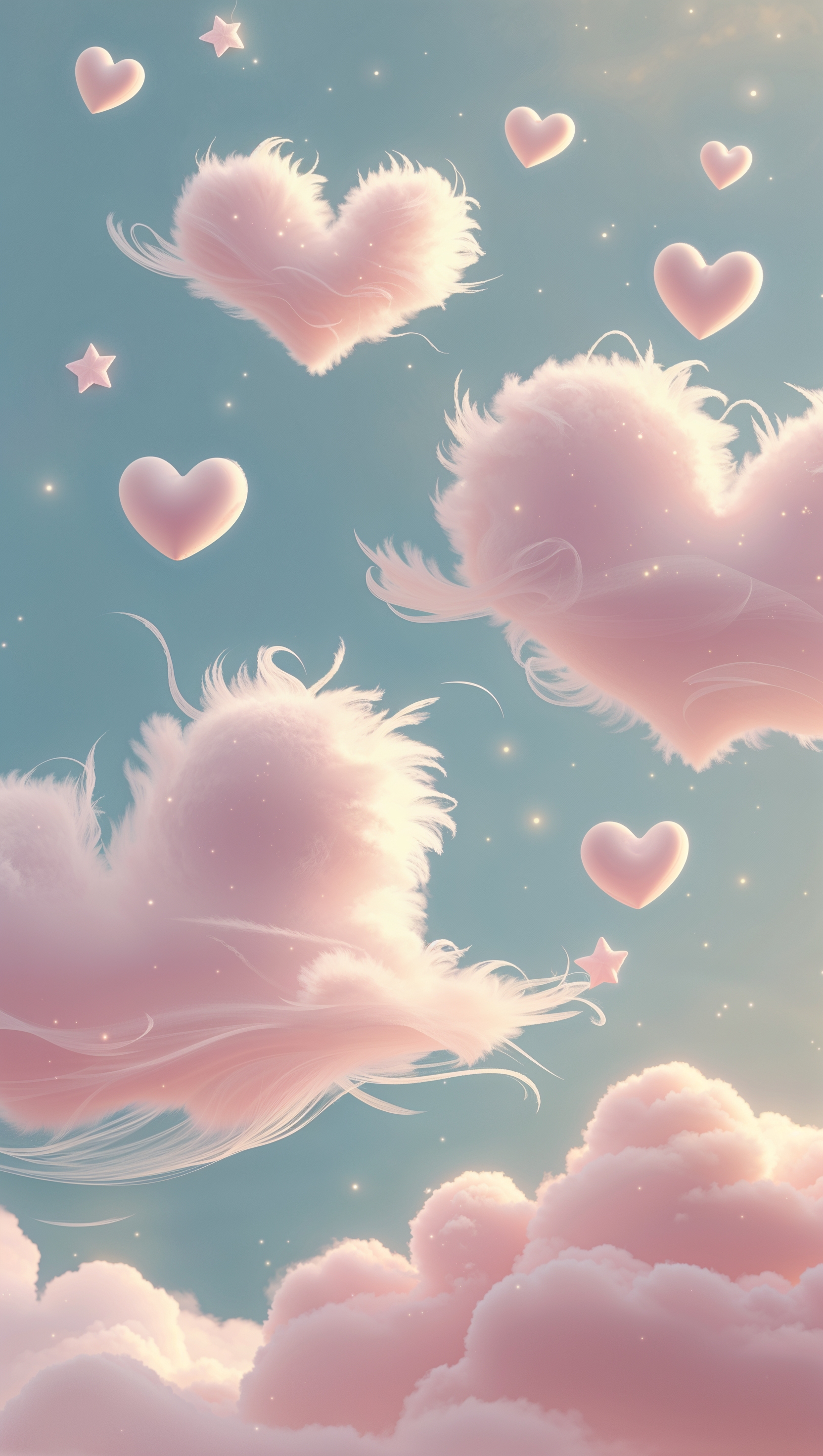 1664x2944 Pastel clouds forming hearts and stars, playful and gentle mood