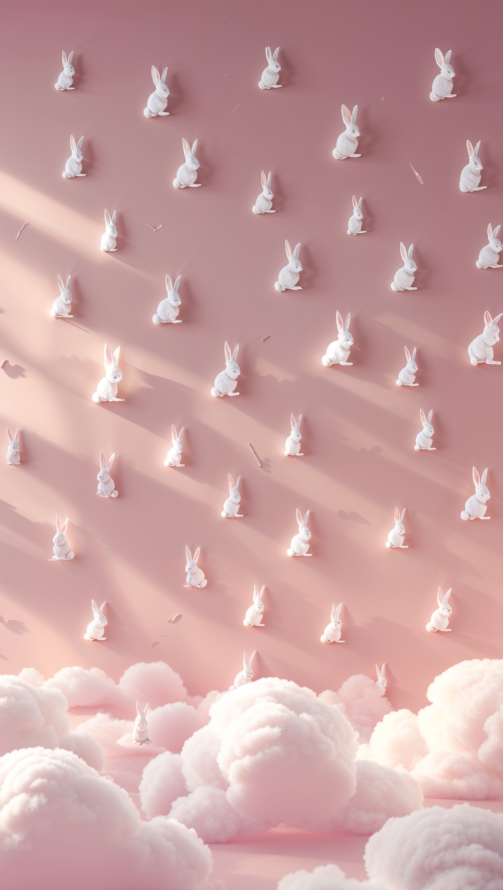 1664x2944 Cute pastel pink background with tiny white bunny silhouettes hopping around