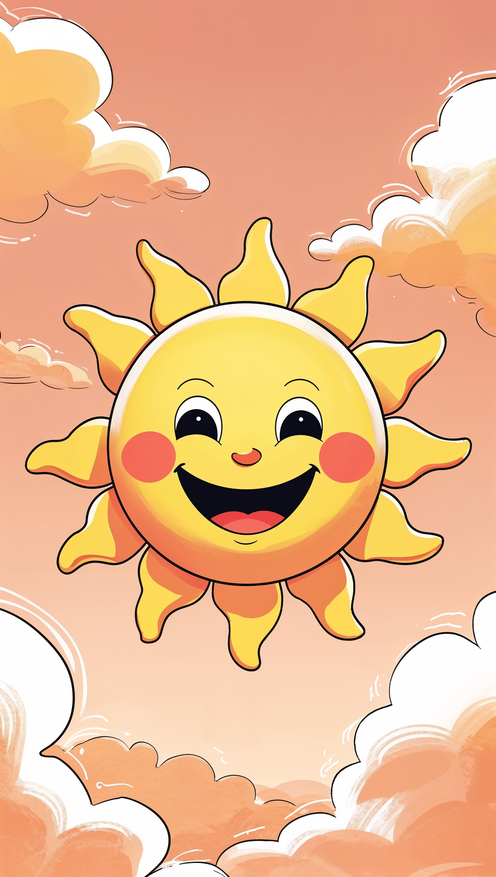 1664x2944 Cartoon style smiling sun with rosy cheeks on pastel orange sky