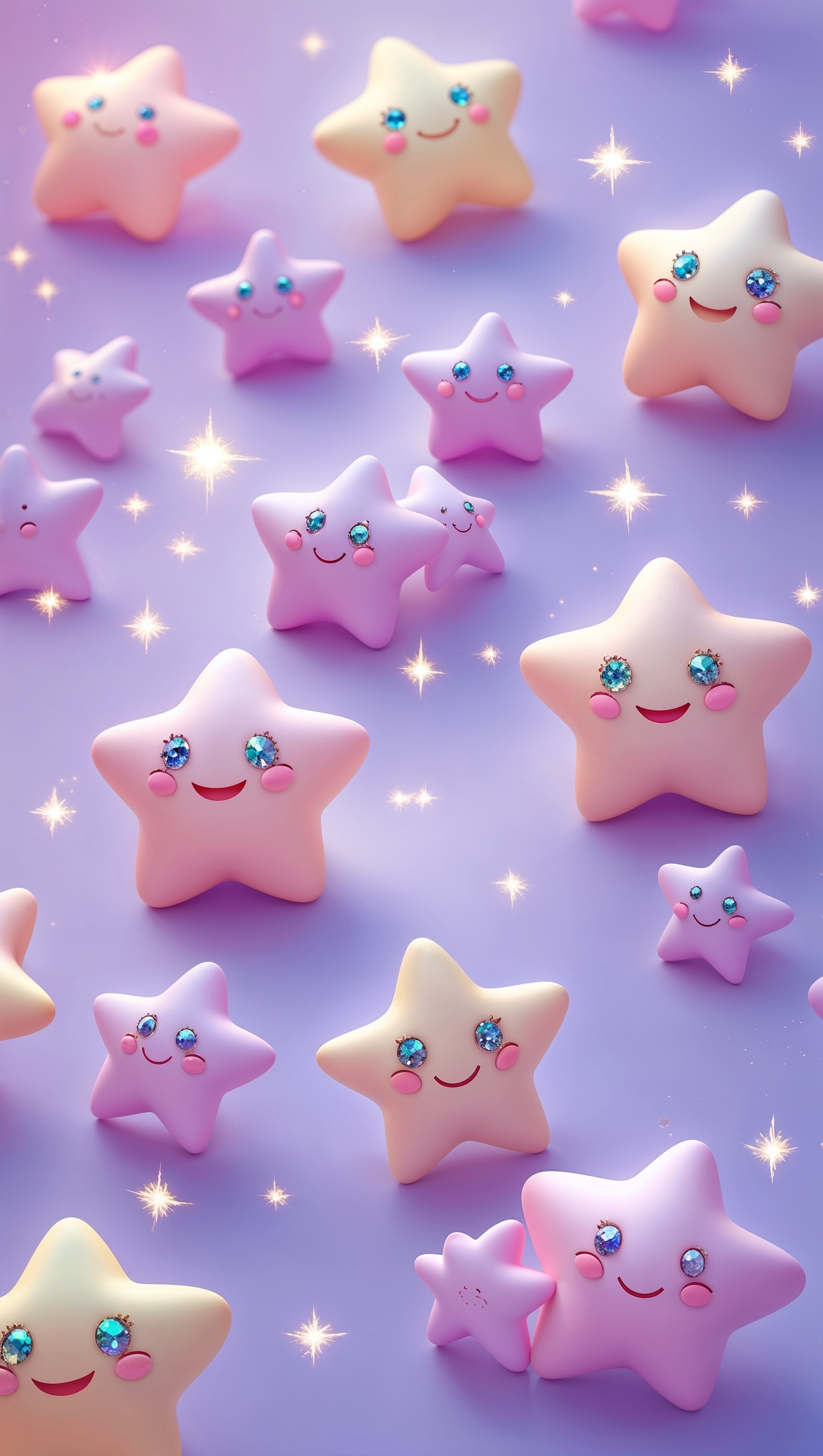 1664x2944 Kawaii-style smiling star characters scattered on lavender background