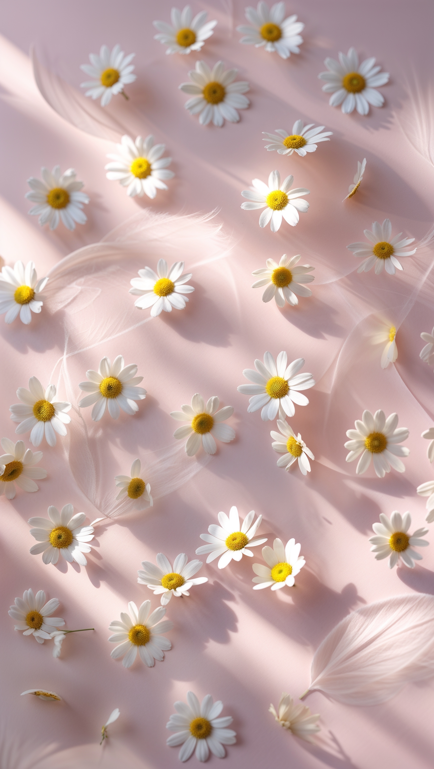1664x2944 Tiny daisies scattered on light pink background with soft shadows