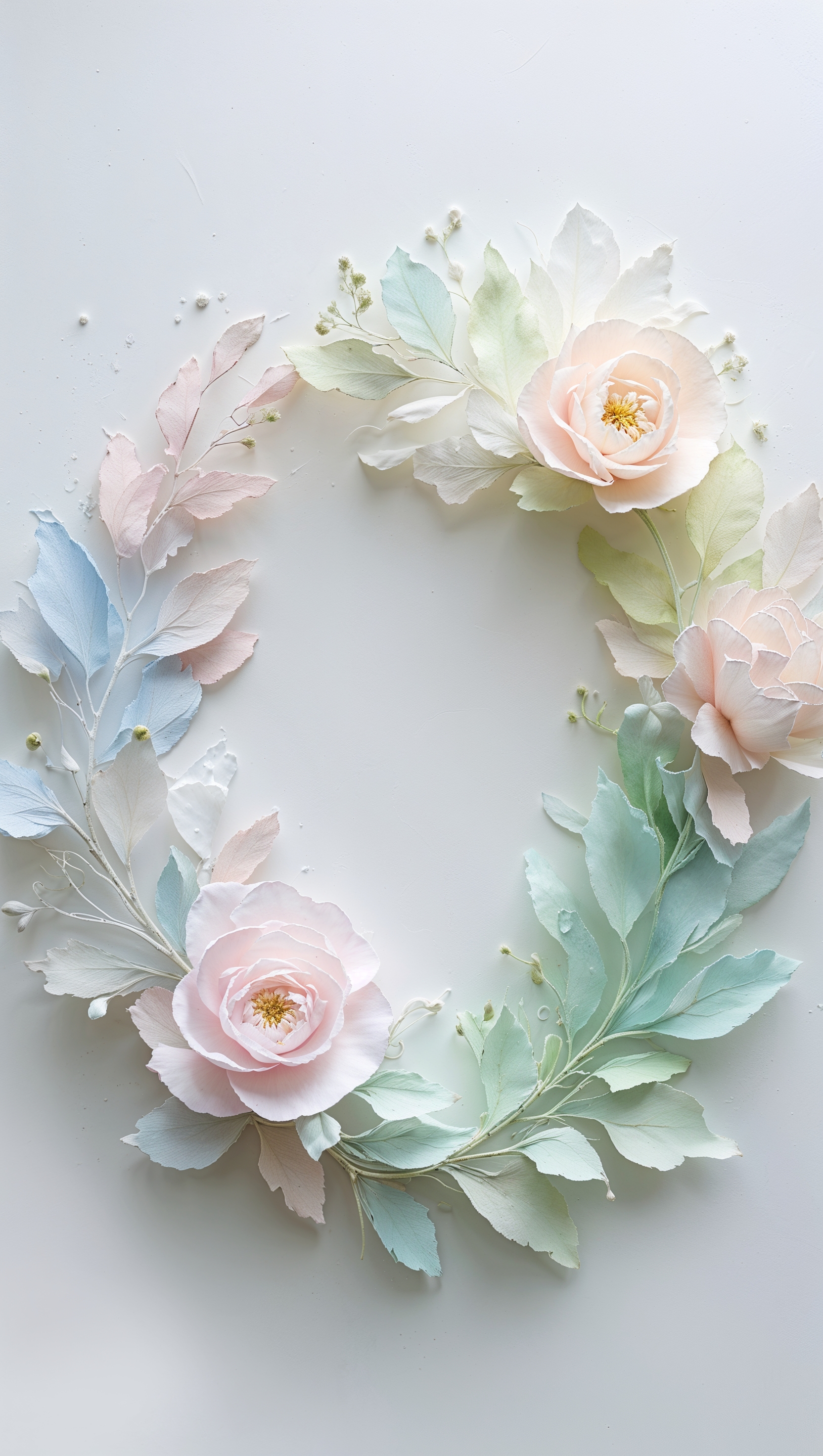 1664x2944 Watercolor floral wreath in pastel colors framing empty space