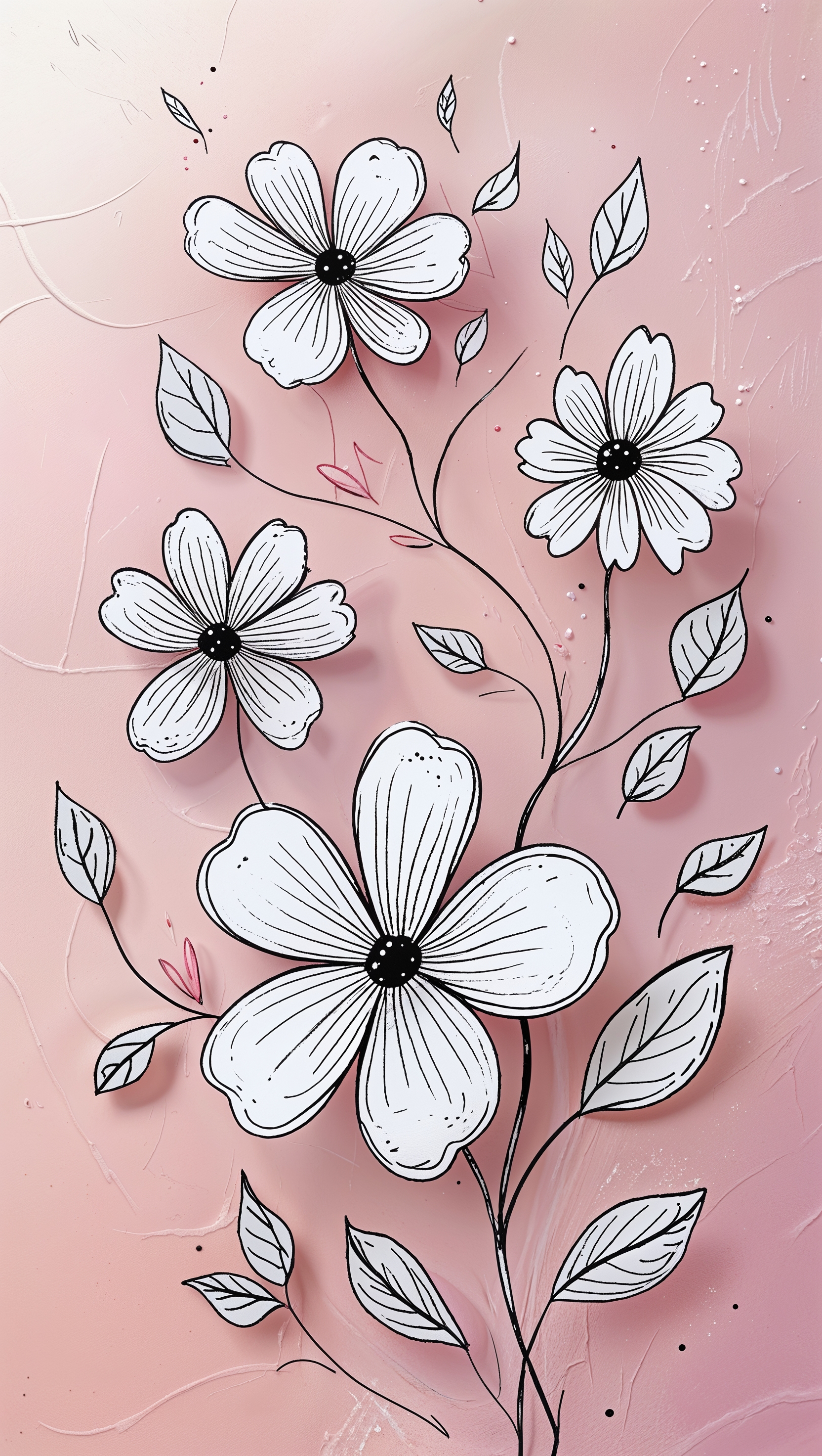 1664x2944 Doodle style flowers and leaves on pale pink background