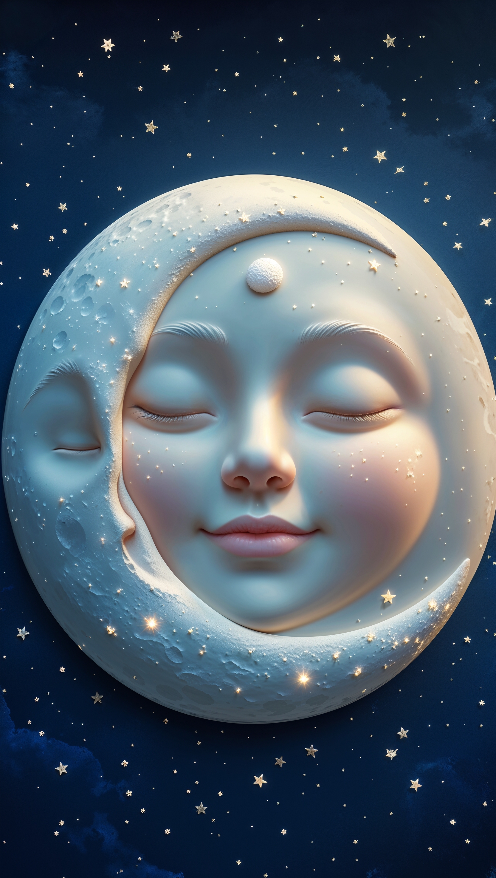 1664x2944 Sleeping moon with a cute face and tiny stars on navy background