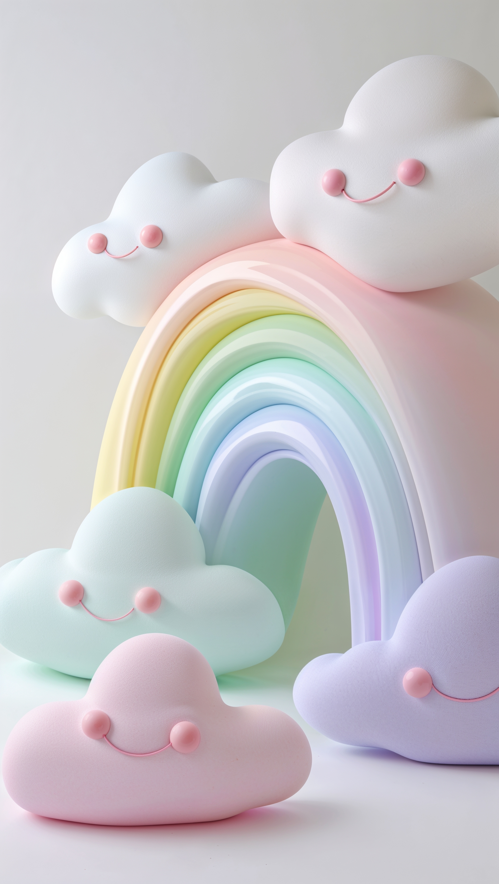1664x2944 Cute pastel rainbow with smiling clouds on white background