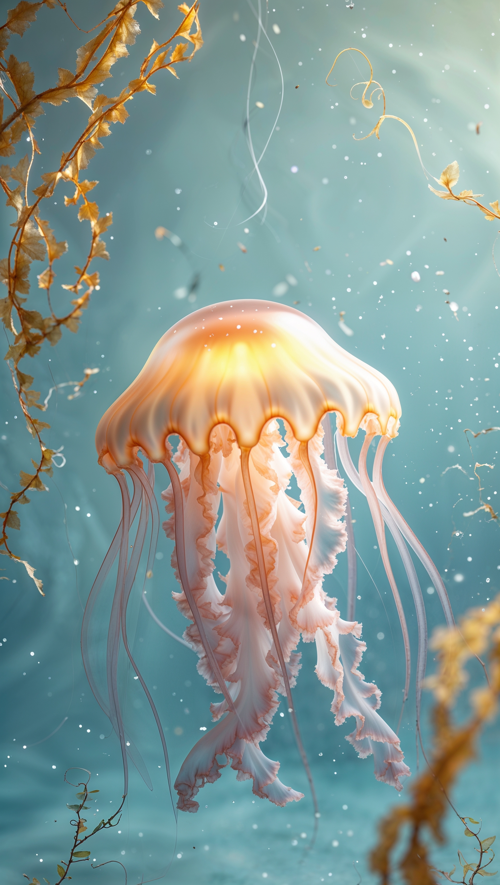 1664x2944 Cute jellyfish with glowing tentacles on pastel ocean blue background