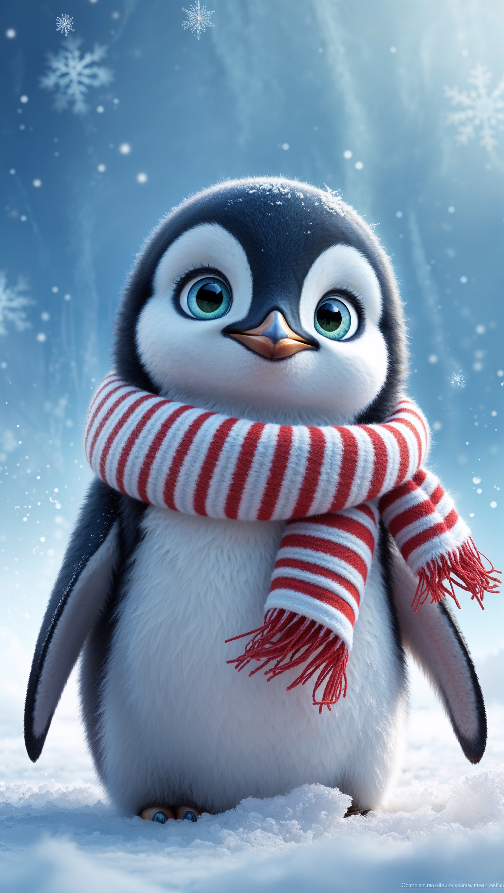 1664x2944 Cute penguin wearing scarf on icy blue winter background