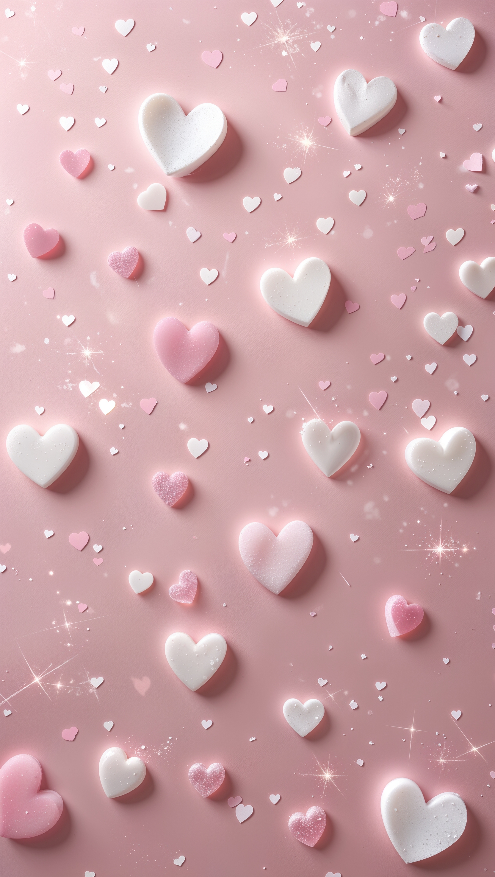 1664x2944 Cute pastel pink background with scattered white hearts and sparkles