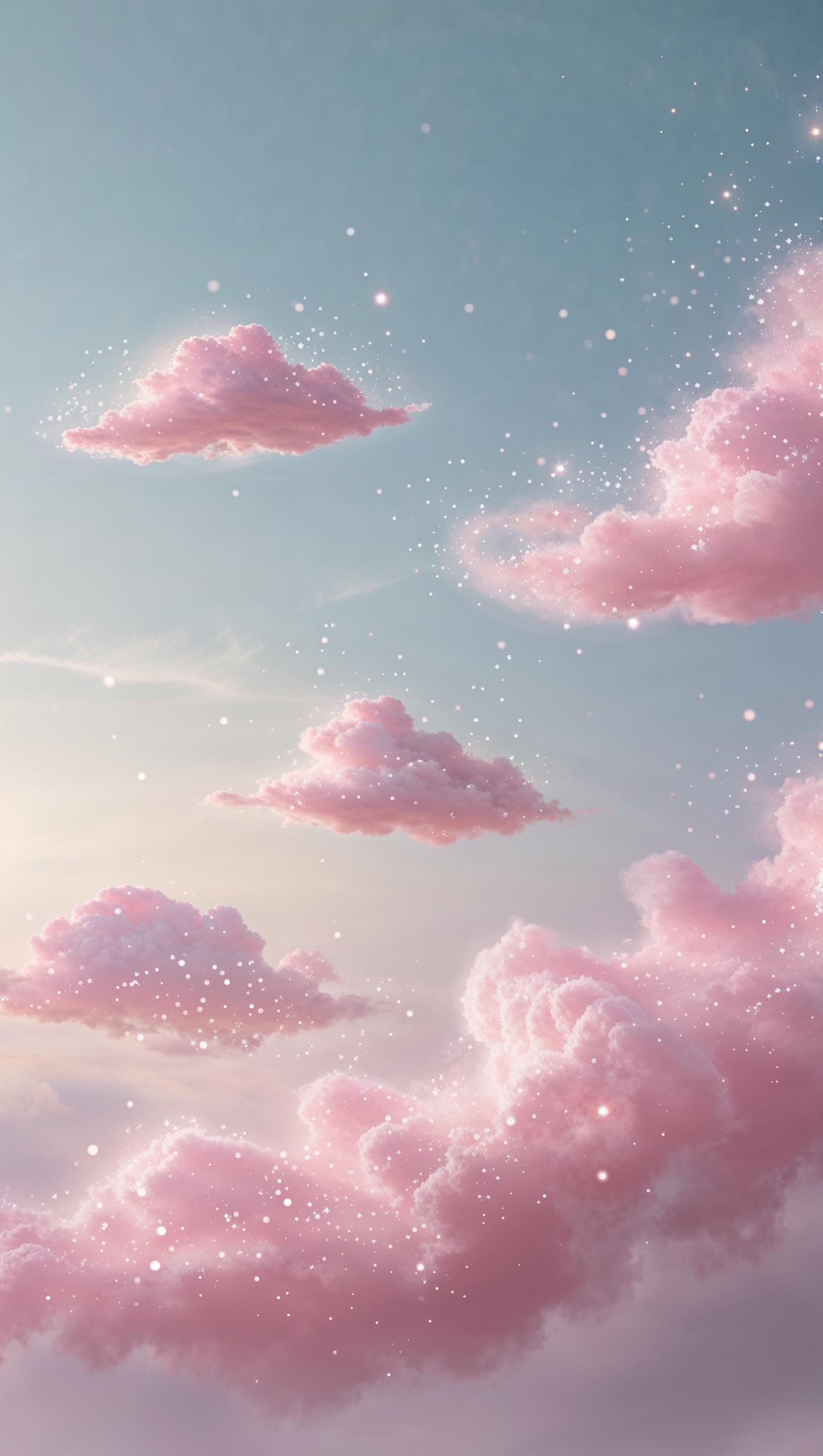 1664x2944 Soft pink clouds with sparkles floating on pastel blue sky