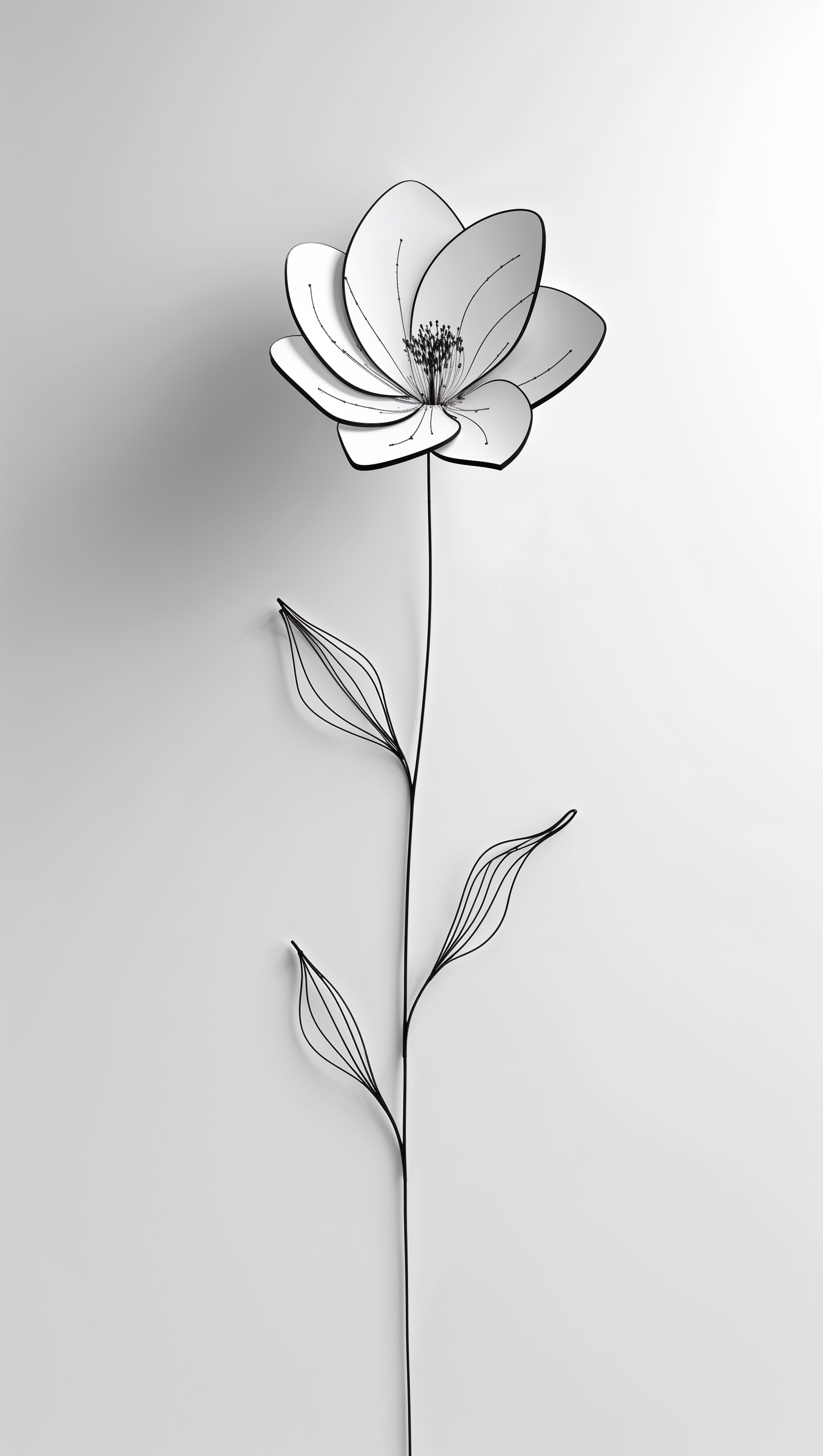1664x2944 Single black line drawing of a flower on white background, clean and elegant