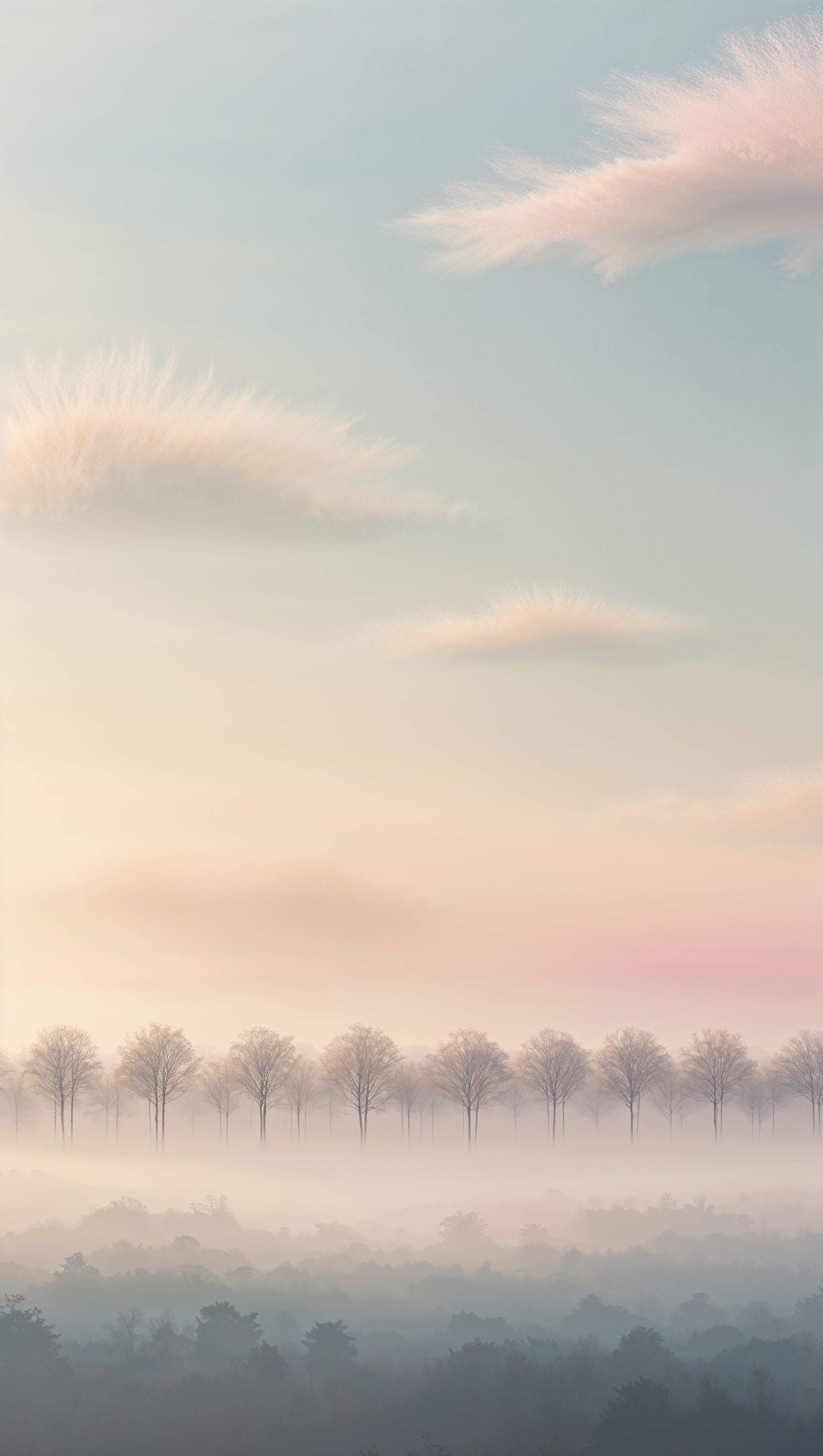 1664x2944 Thin tree line horizon with soft morning mist and pastel sky
