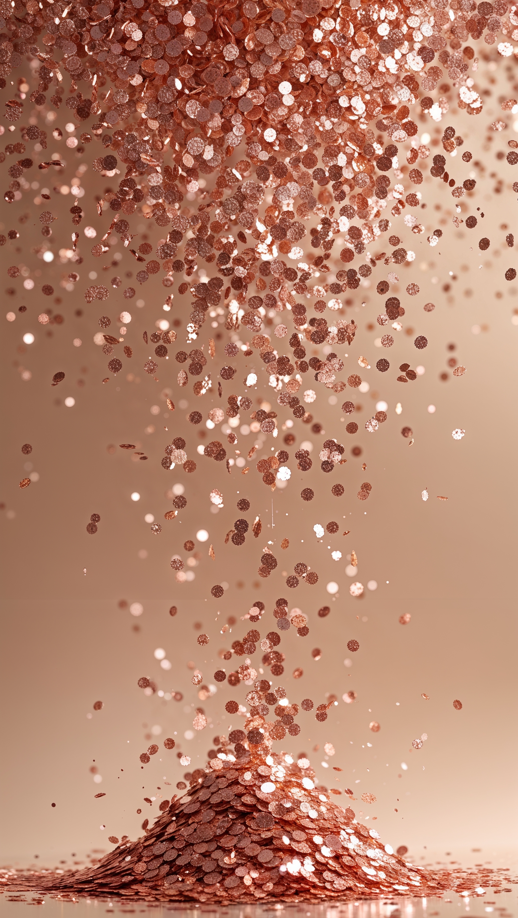 1664x2944 Cream-colored background with rose gold glitter fall, vertical iPhone format