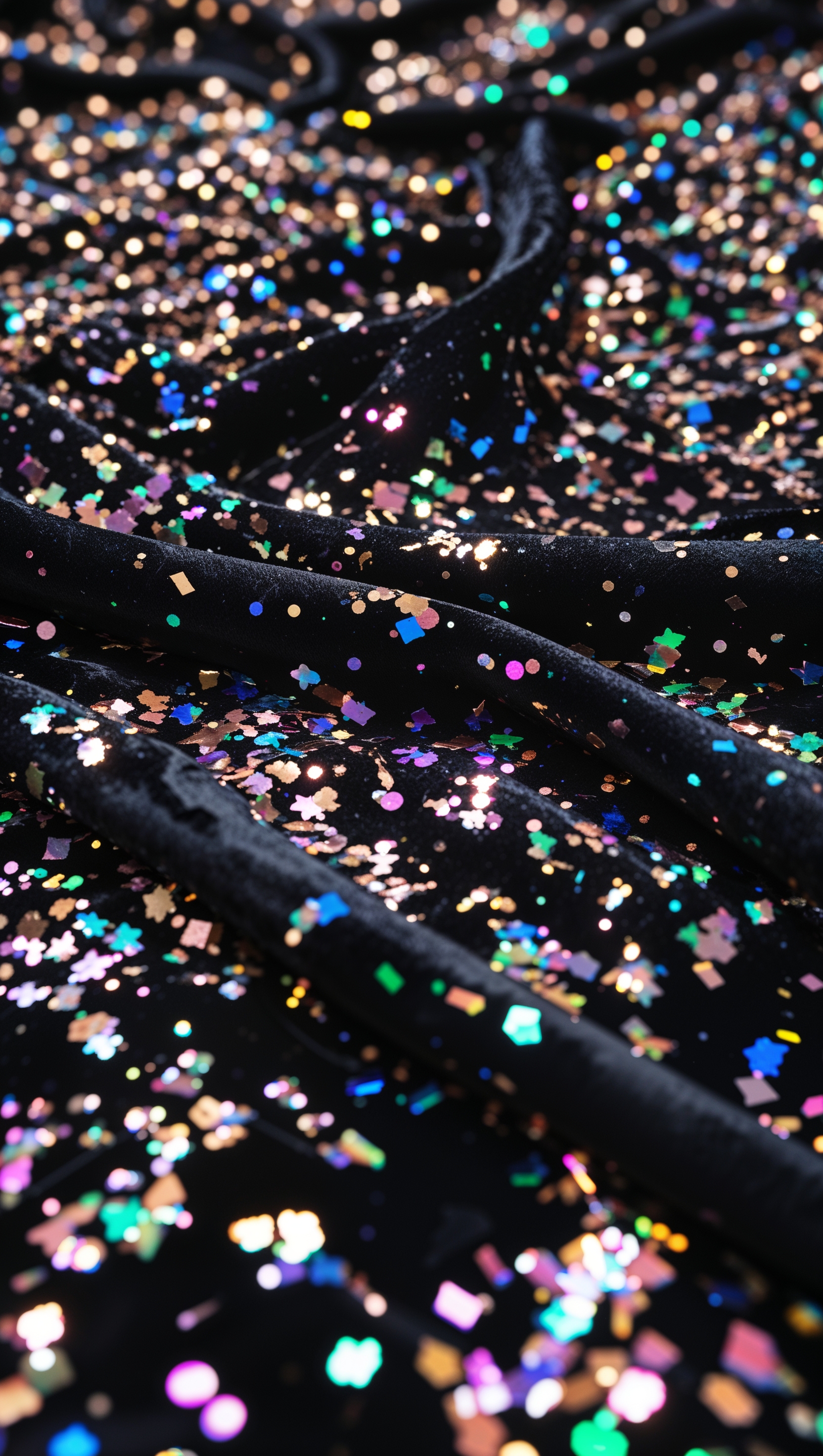 1664x2944 Black background with vibrant multi-color glitter, glamorous party vibe