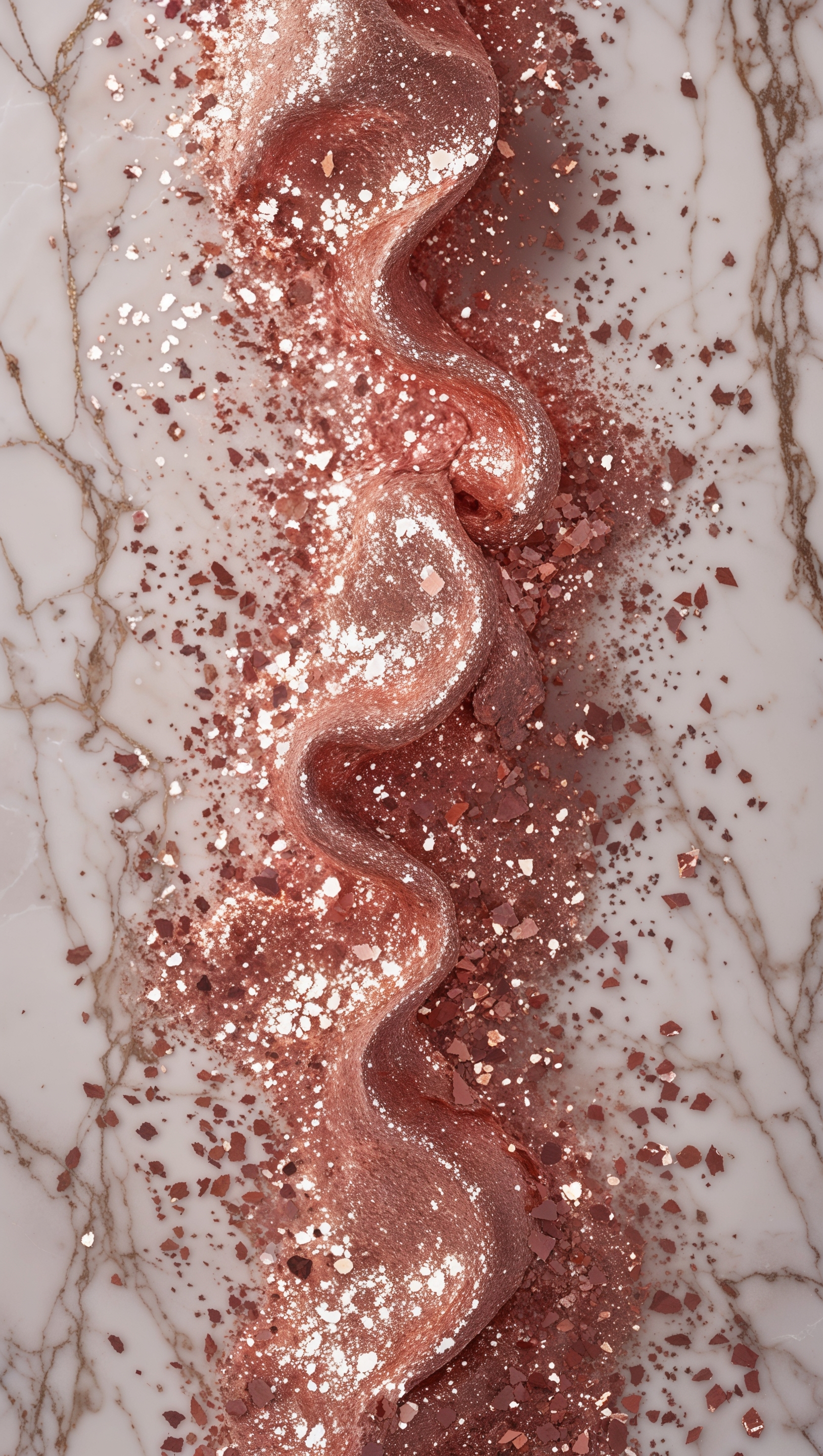 1664x2944 Vertical rose gold glitter shimmer on white marble background