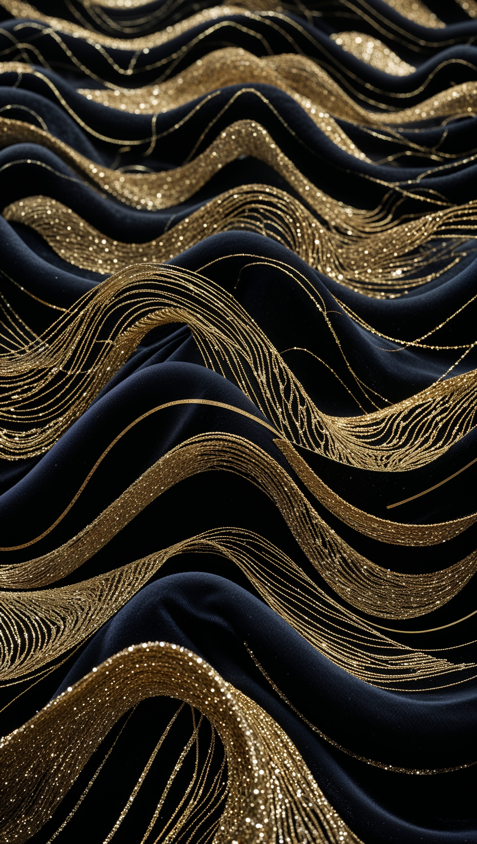 1664x2944 Gold glitter lines forming abstract waves on a deep black background