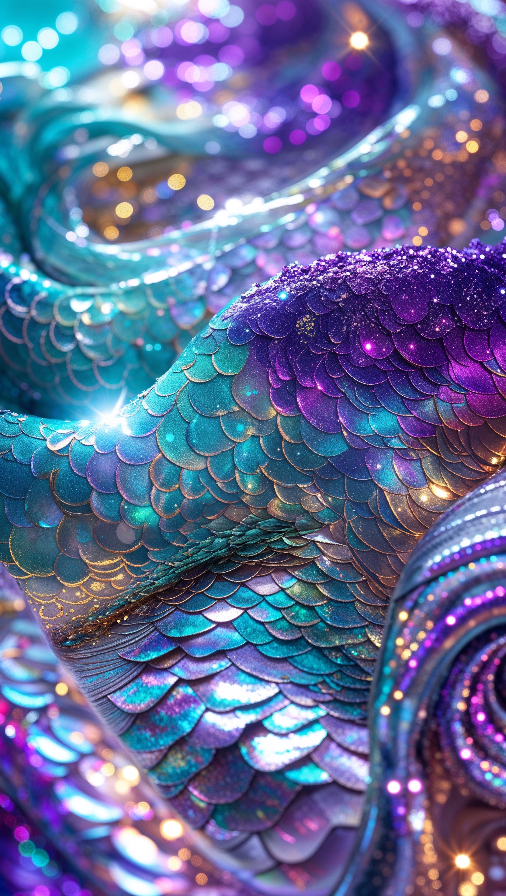 1664x2944 Mermaid-inspired glitter background in aqua, purple, and silver