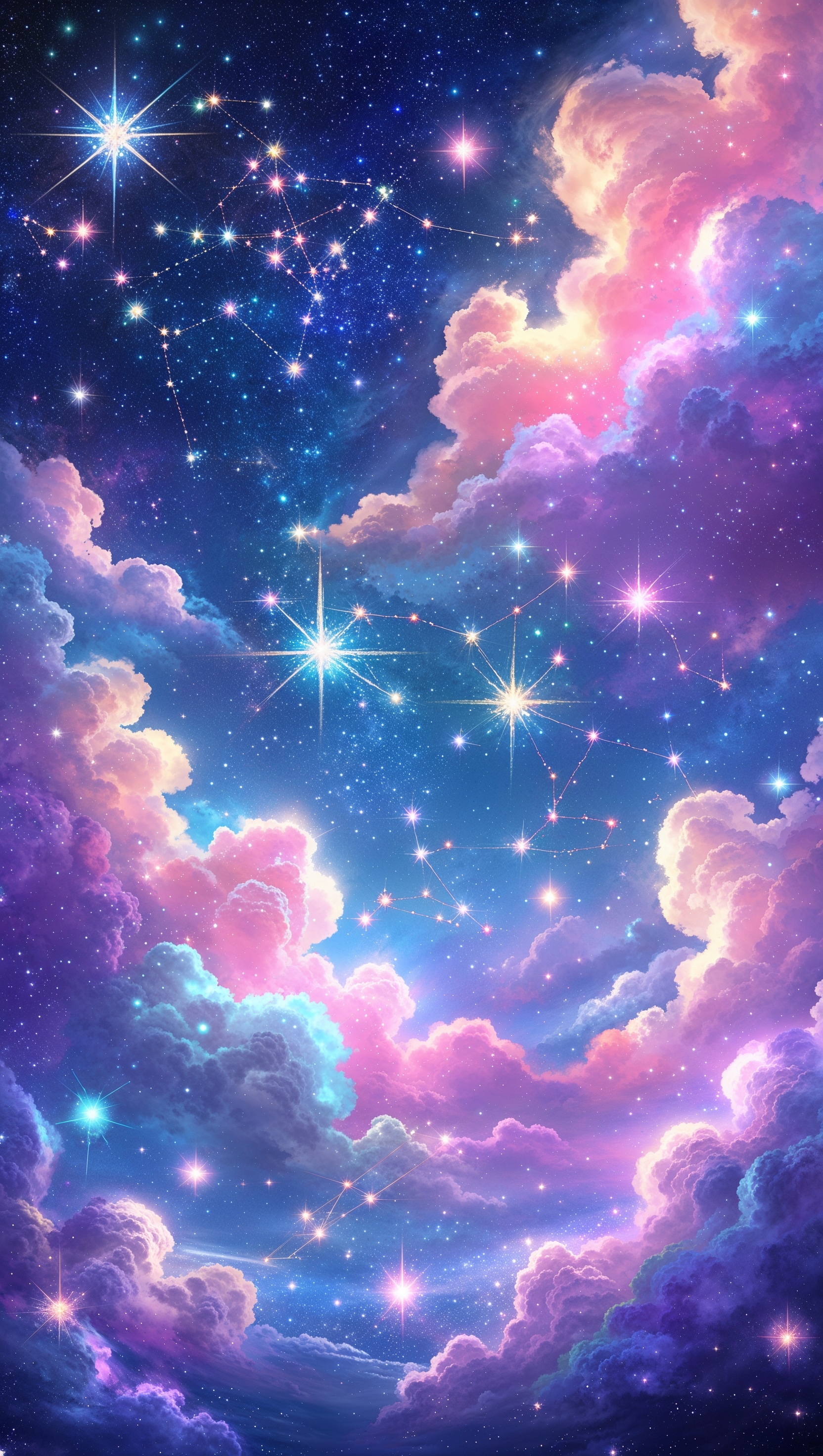 1664x2944 Fantasy glitter sky with sparkles forming constellations