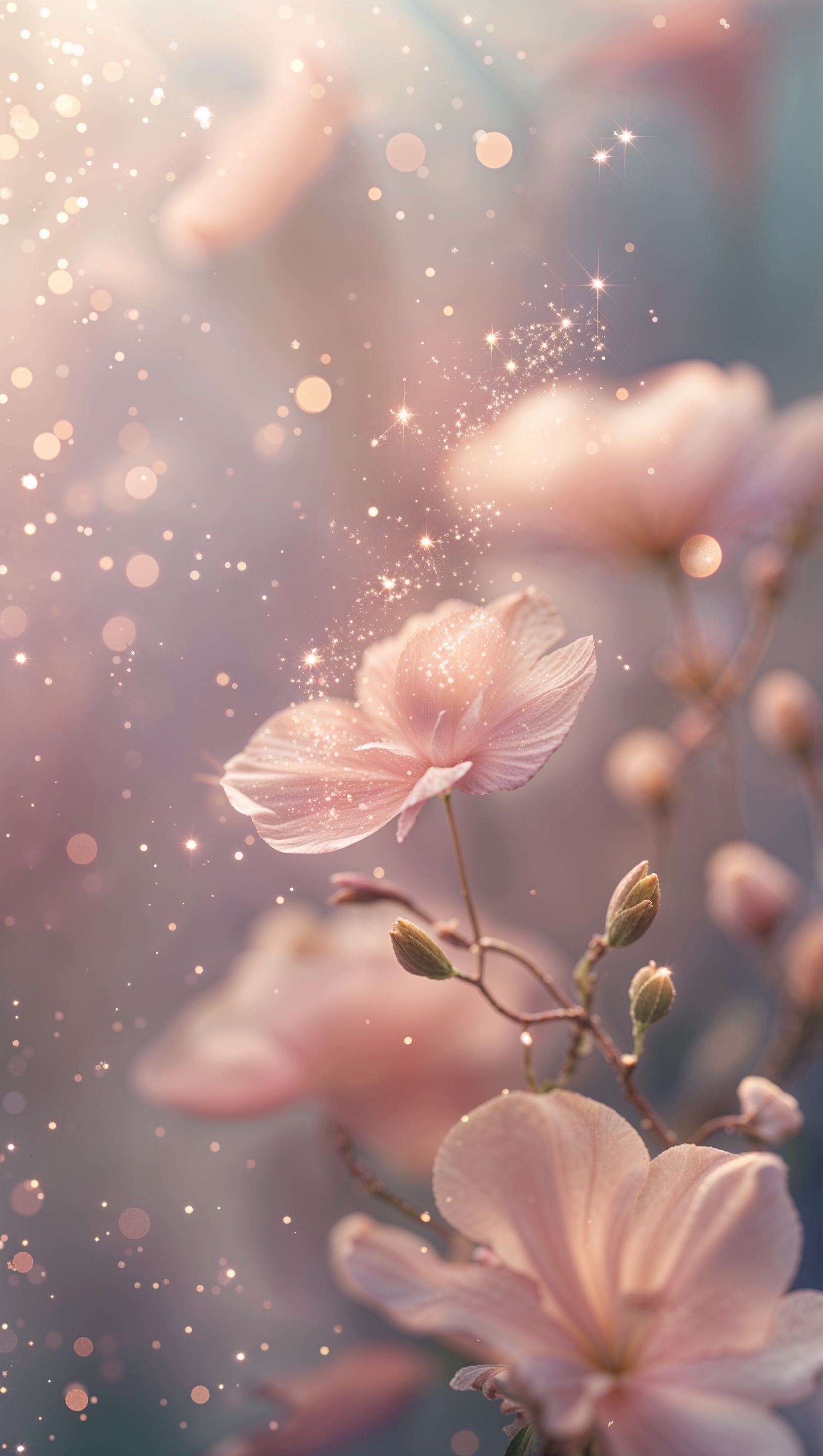 1664x2944 Subtle sparkle overlay on a blurred floral background, romantic aesthetic