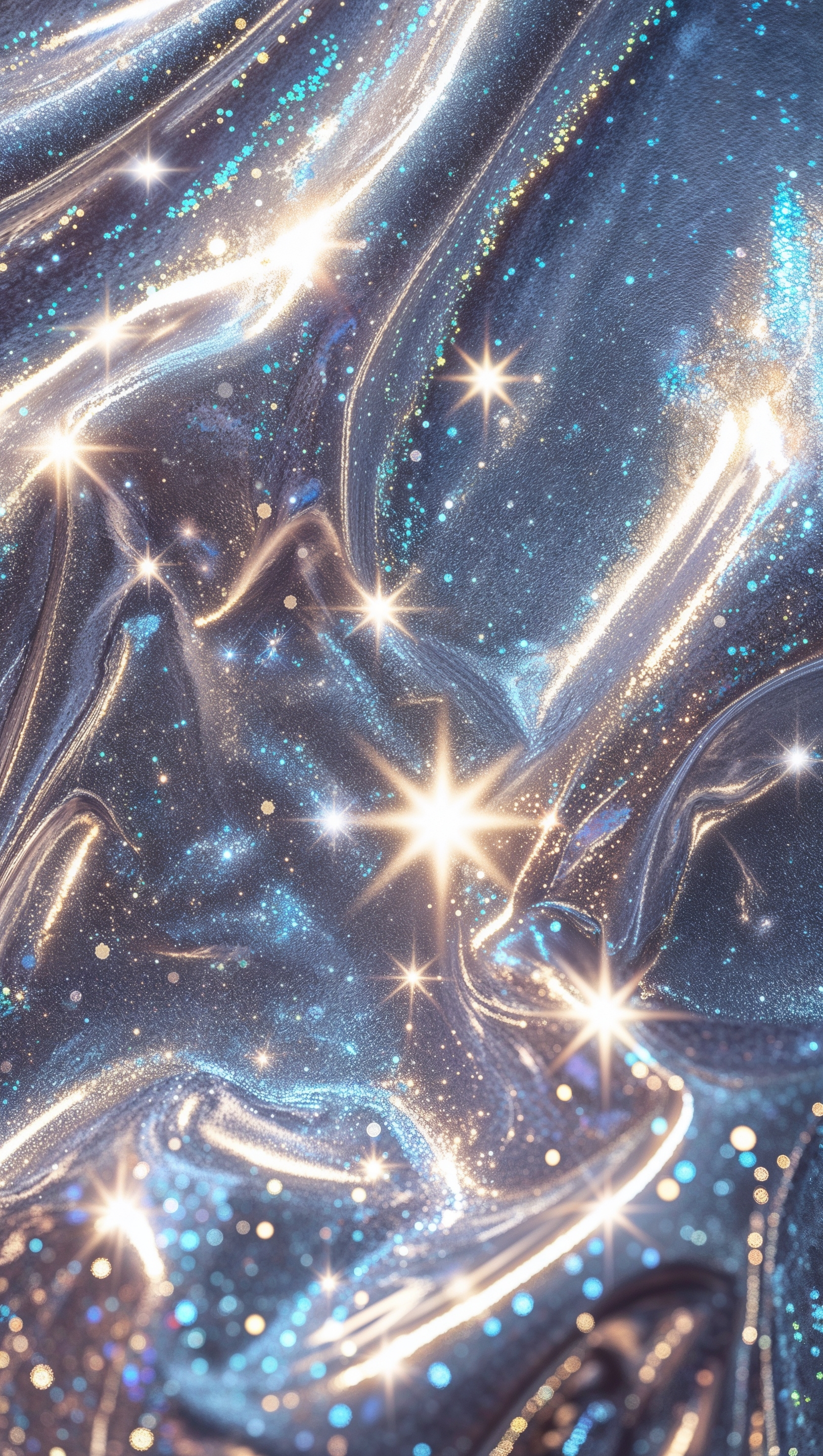 1664x2944 Glittering abstract waves in chrome and silver tones, futuristic look