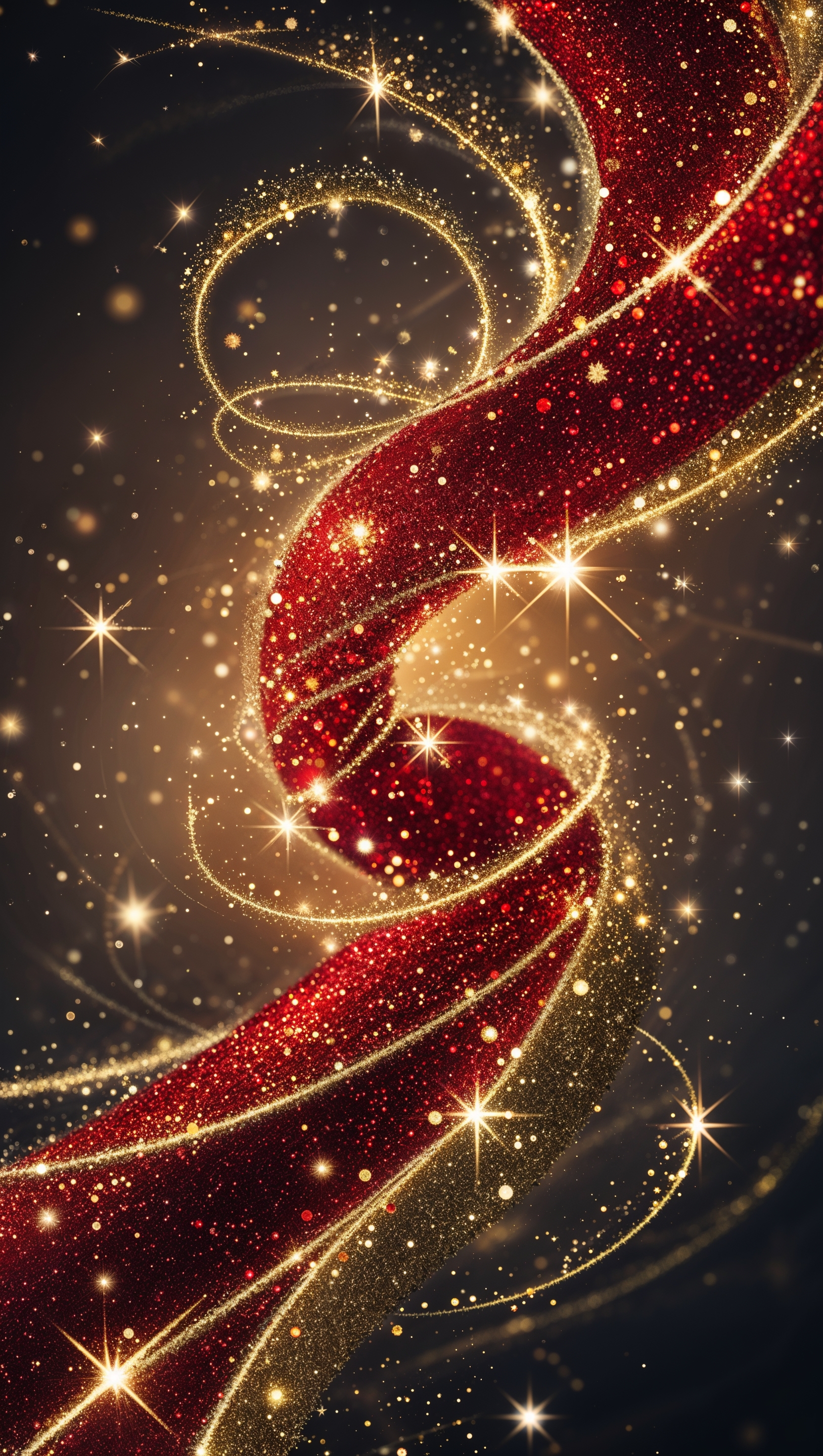1664x2944 Red and gold glitter swirl with glowing sparkle trails, festive design